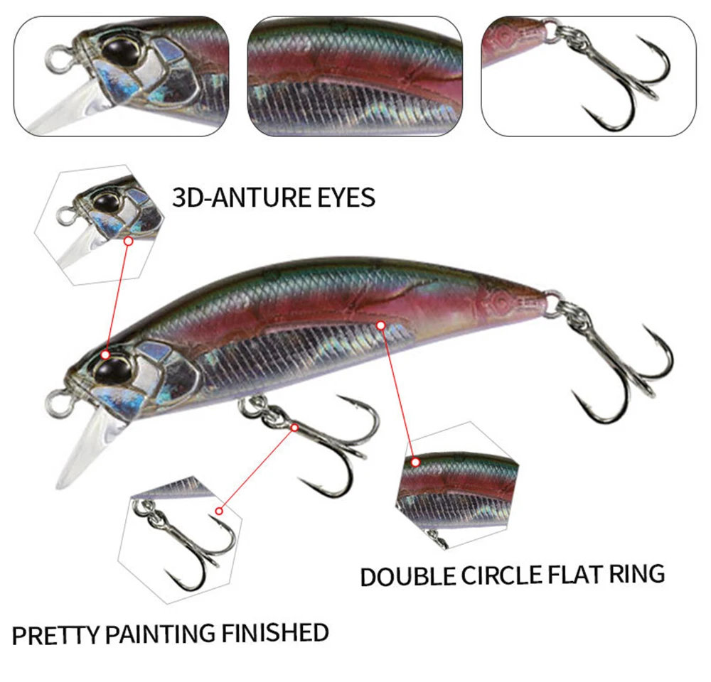 3. Los cebos tienen una pintura realista y ojos 3D vívidos, hacen que el cebo parezca peces reales nadando en el agua durante la pesca.