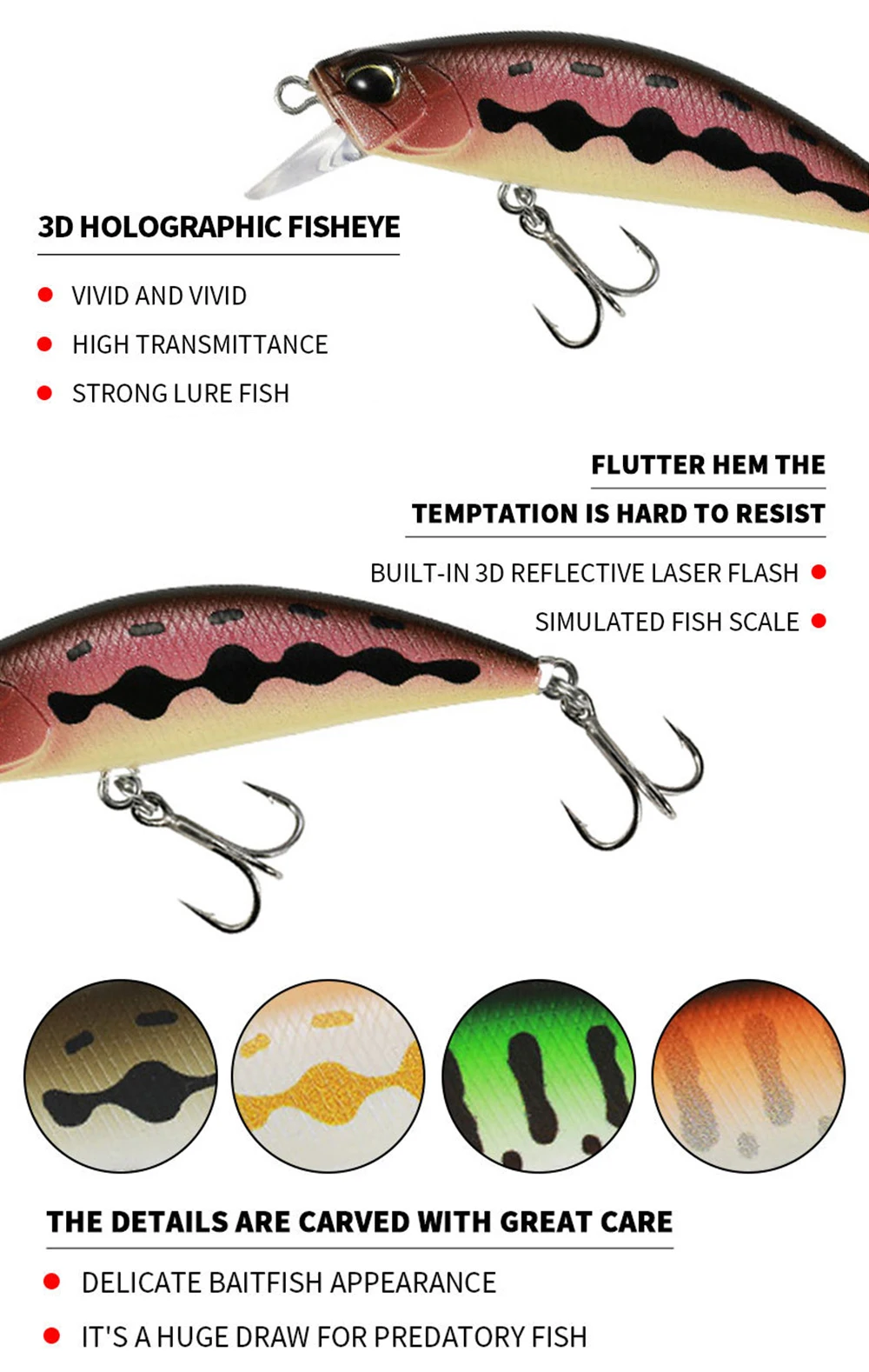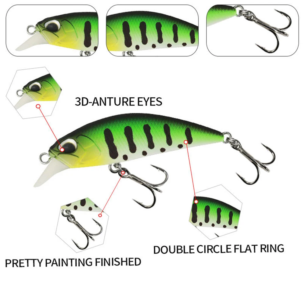 3. Los cebos tienen pintura realista y ojos 3D vívidos, hacen que el cebo parezca un pez real nadando en el agua durante la pesca.
