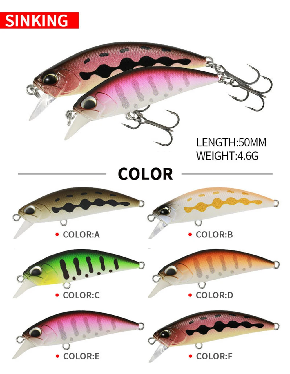 5cm 4,6g señuelo de pesca Micro Minnow Wobbler hundimiento cebo duro Artificial Jerkbait cebo de corriente de tamaño pequeño para trucha lubina MN702