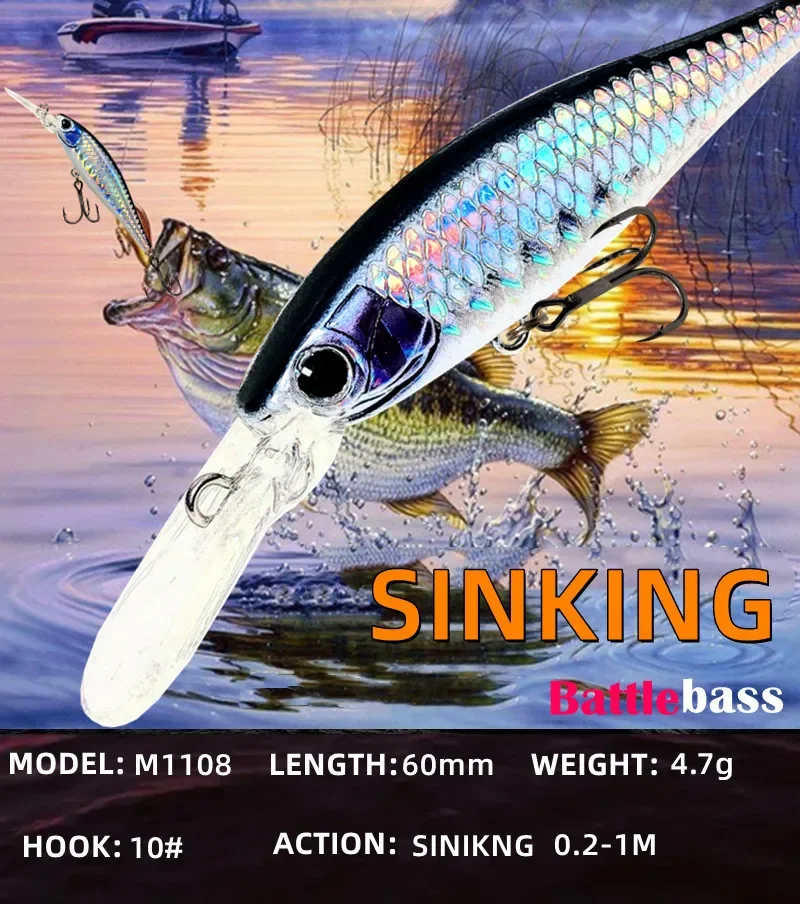 Señuelo de pesca de 6cm y 4,7g, cebo duro Artificial para pececillos, Wobbler, buceo profundo, Jerkbait, Swimbait