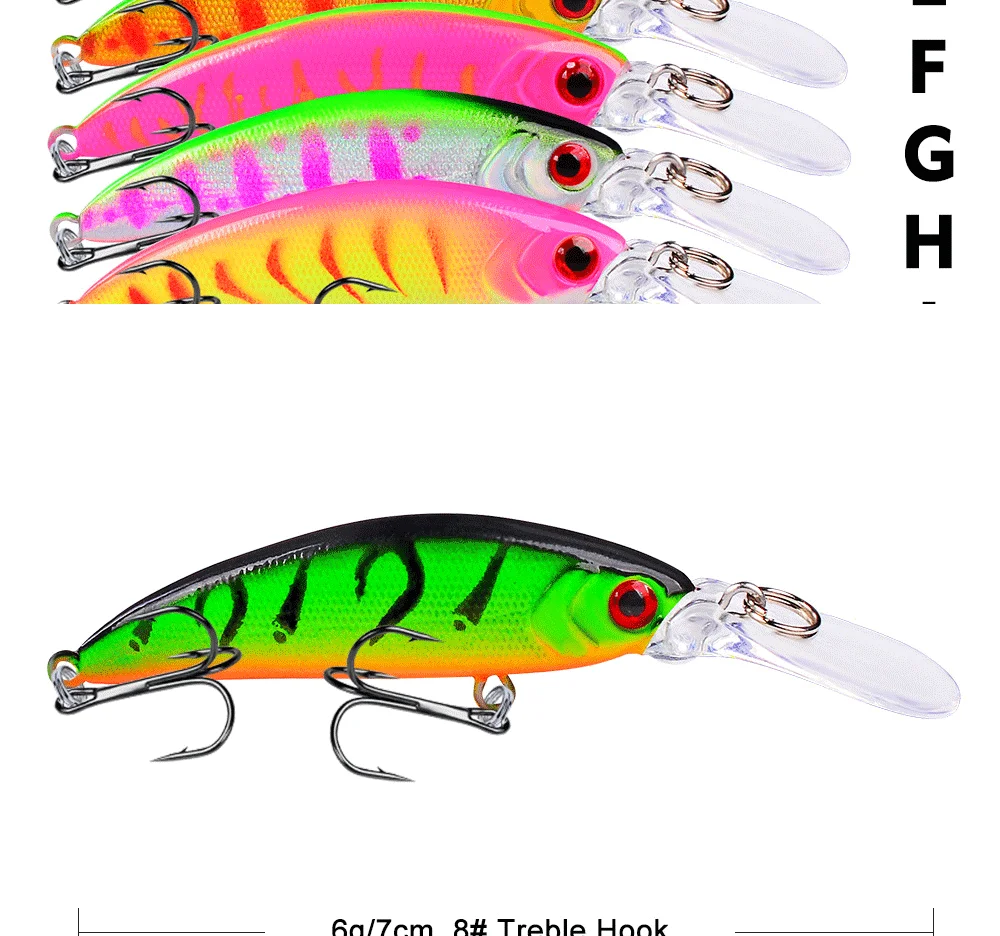 3. Está hecho de material plástico ABS. Es firme y fuerte. Es antigolpes. Las bolas de acero utilizadas en el interior han sido probadas con instrumentos de precisión para garantizar la postura de natación de cada cebo en la mayor medida posible.