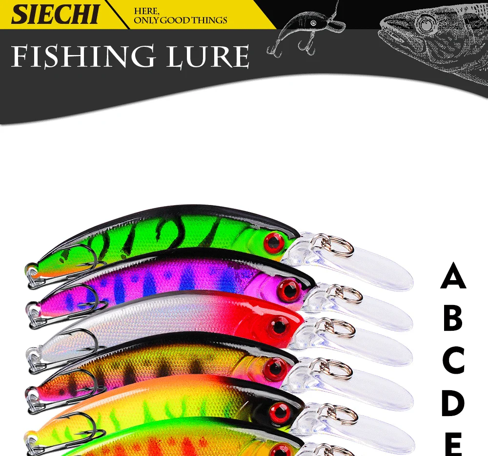 Señuelo de pesca de 70mm 6g ojos 3D Crankbait Wobblers cebo duro de plástico Artificial aparejos de pesca