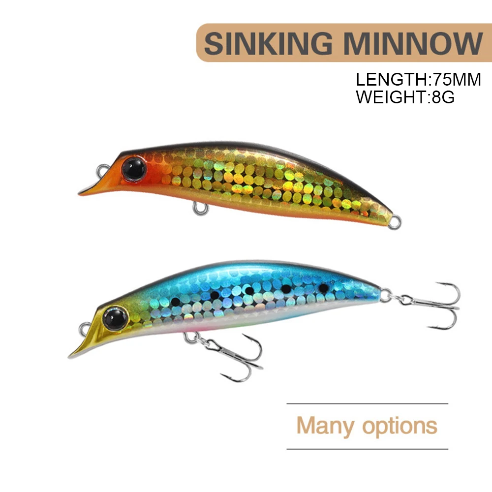 7,5 cm 8g señuelo de pesca Minnow Wobbler señuelo de fundición larga hundimiento Trolling Jerkbait Swimbait cebo duro Artificial cebo de trucha cebo bajo