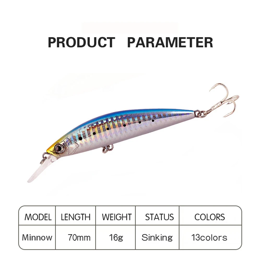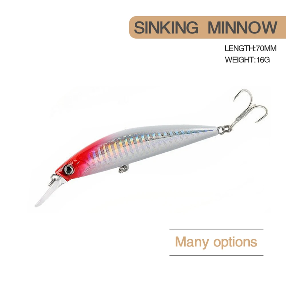 Señuelo de pesca de 7cm y 16G, Minnow Wobbler que se hunde, potente Pesca de Mar oscilante, Jerkbait, Swimbait, cebo duro Artificial, cebo para trucha y lubina