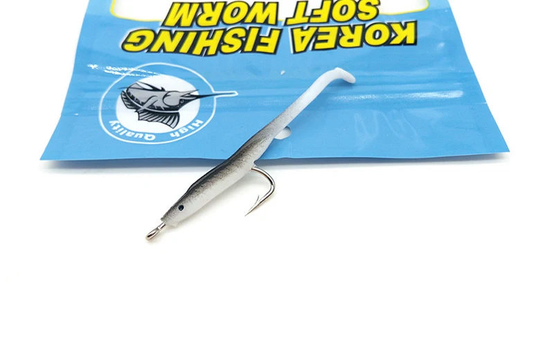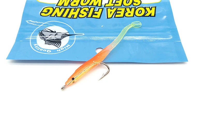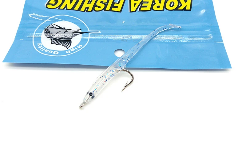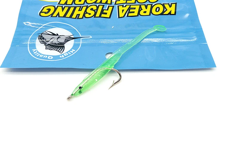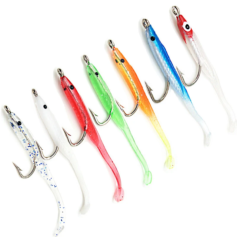 Noticias 10 unids/lote 7cm 1g señuelo de Pesca pescado Anguila señuelo blanco azul cebos suaves con anzuelo pequeño pez anguila cebo Artificial Pesca Leurre