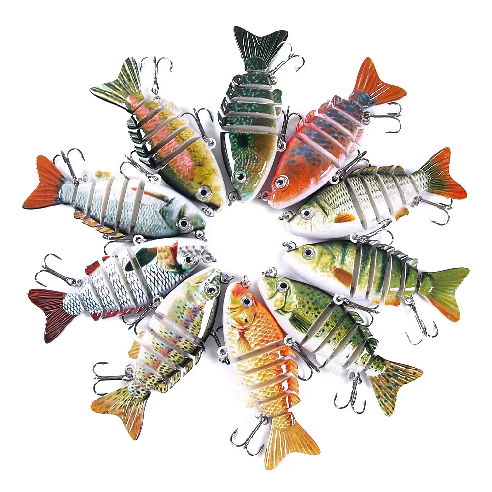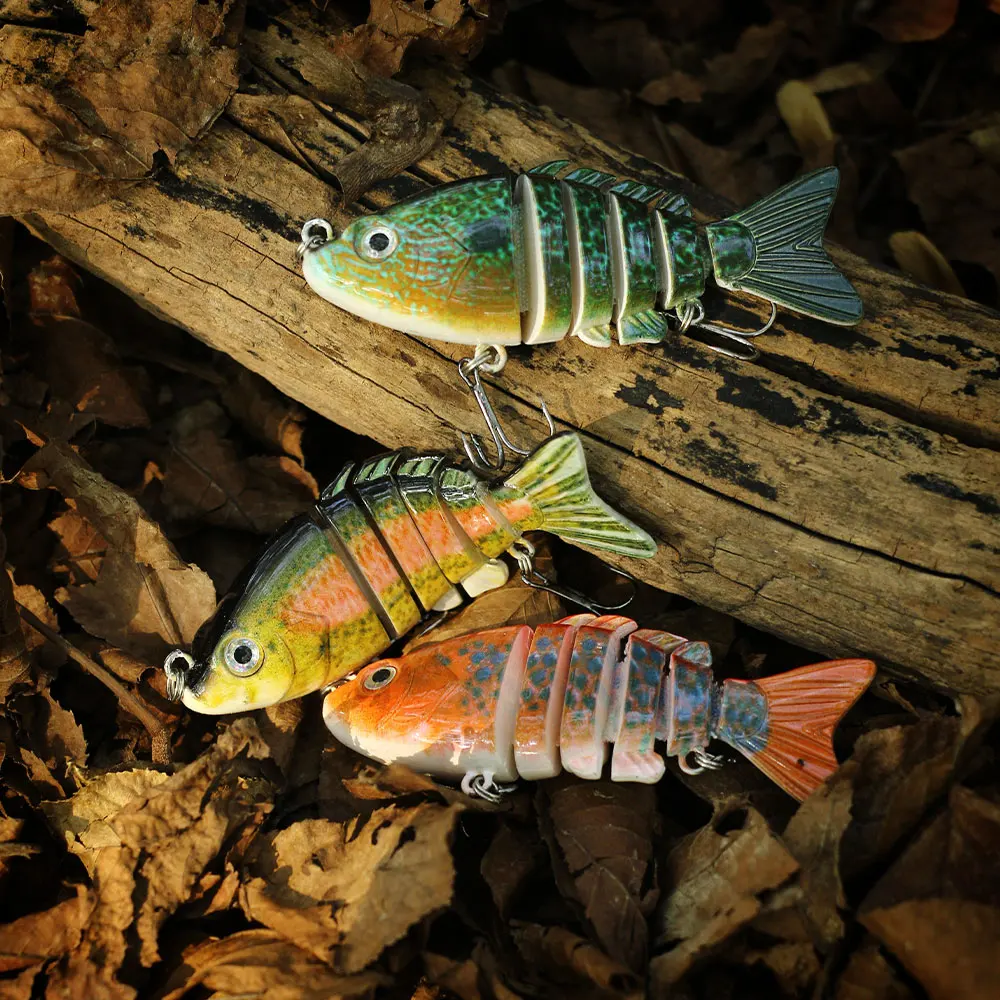 Señuelo de Pesca de 8cm, 13g, ojos 3D, señuelo duro de Pesca realista de 6 segmentos, Crankbait con 2 anzuelos, cebos de Pesca para lubina y Lucio