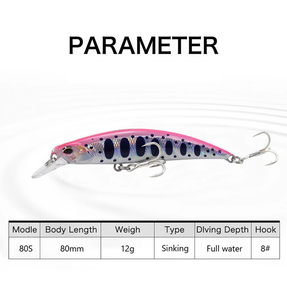 8cm 12g señuelo de pesca Minnow Wobbler RYUKI 80S hundimiento curricán Swimbait Jerkbait cebo Artificial boca amartillada pescado bajo cebo