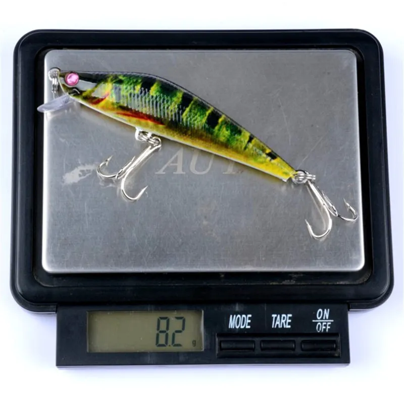 Marca: WDAIRENTipo de señuelo: Señuelos WobblersPeso: 8,5 gLongitud: 80 mmColor: 4 colores diferentesProfundidad de buceo: 0,3-1,5 MMaterial: plástico ABSGancho: 2x anzuelo triple afiladolista de embalaje:1x señuelos de pesca