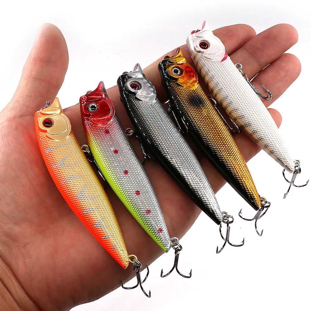 1. Strong high carbon steel treble hooks, 3D lifelike eyes, top water lures.
