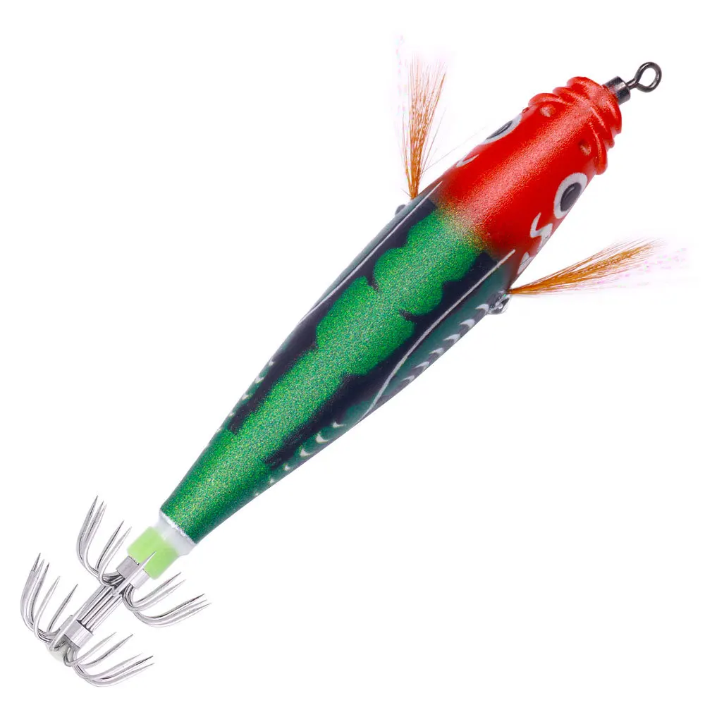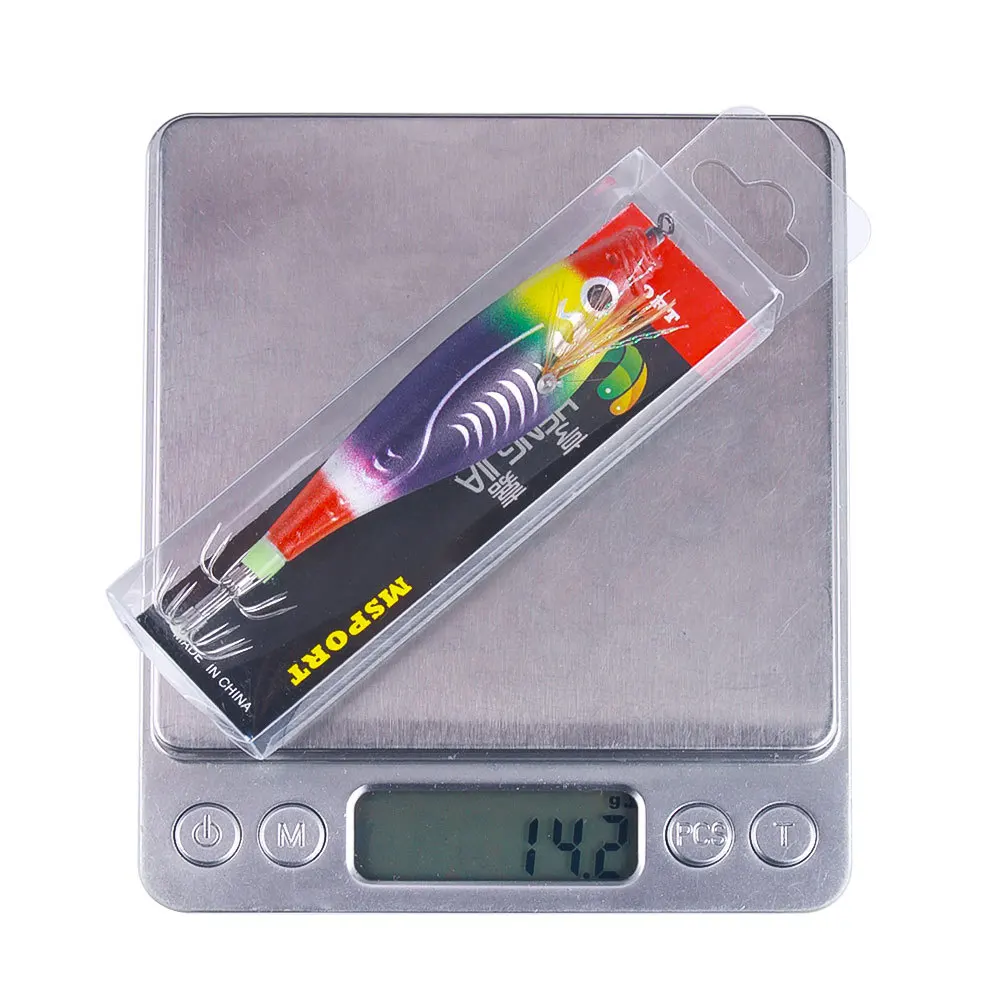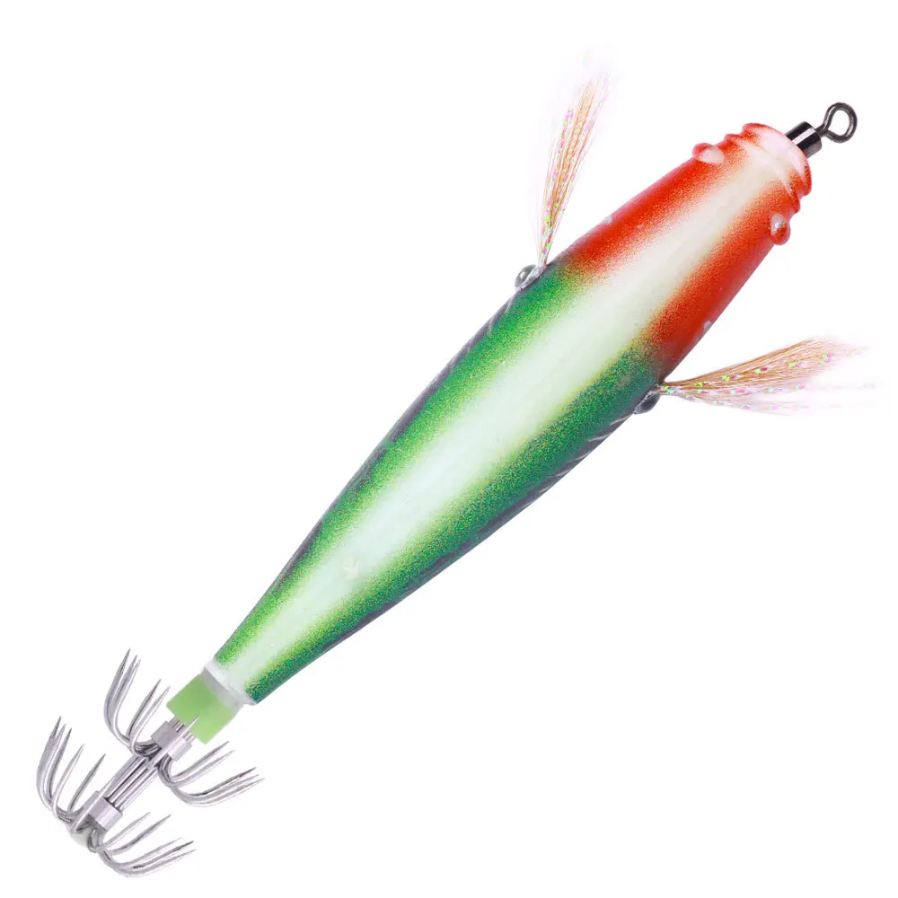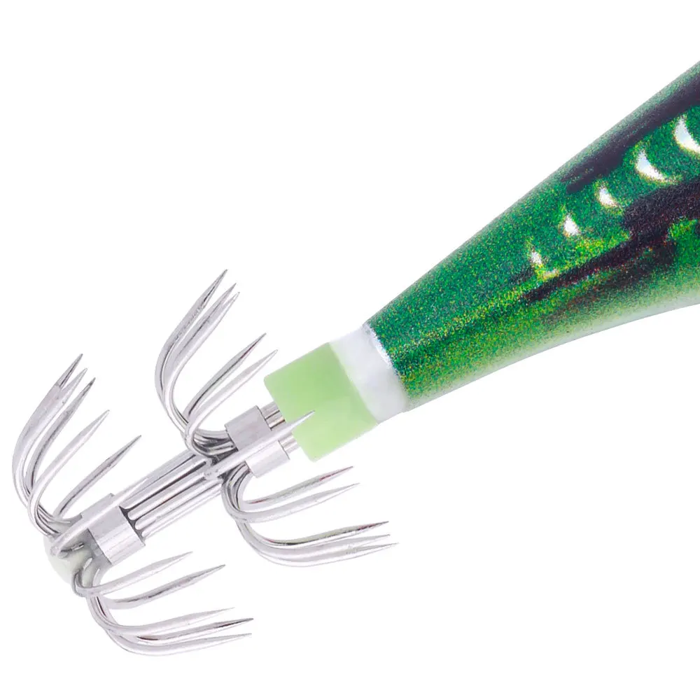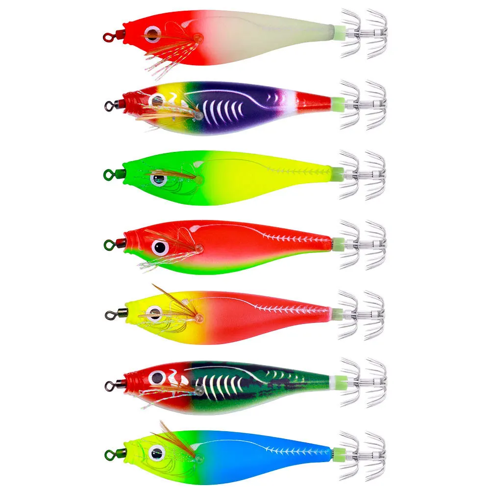 Señuelo de pesca de 9,5 cm, anzuelo de calamar Artificial, plantillas de calamar noctilucentes, señuelos de sepia, camarones de madera para accesorios de pesca en el mar