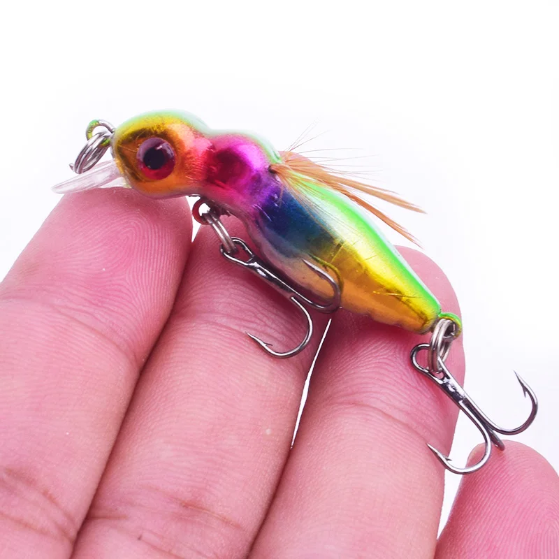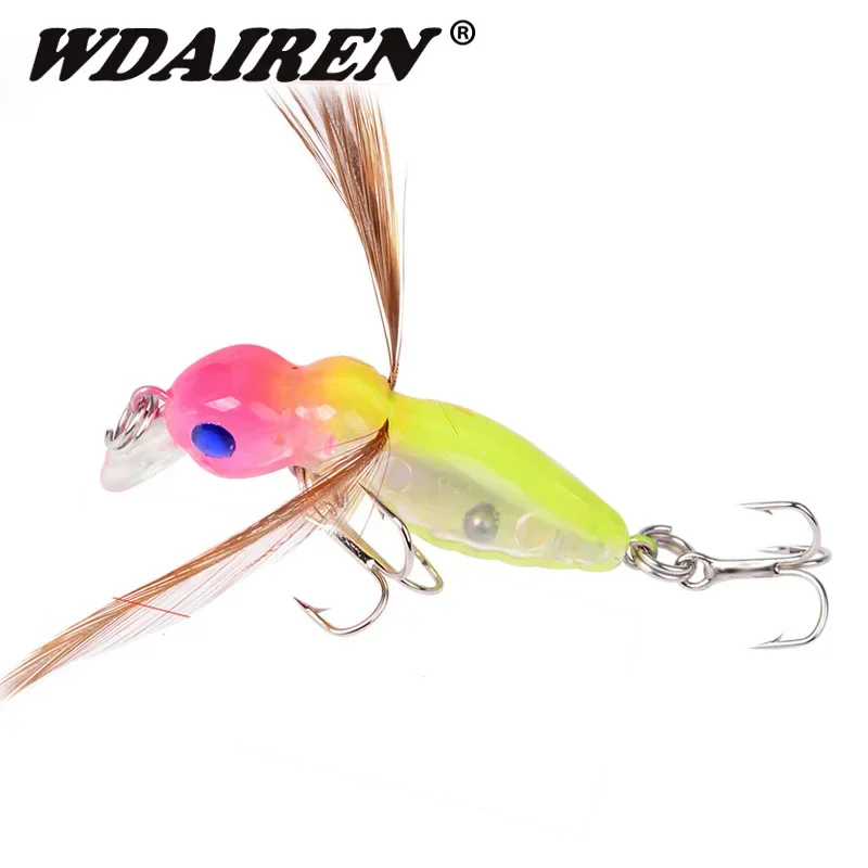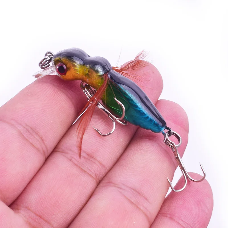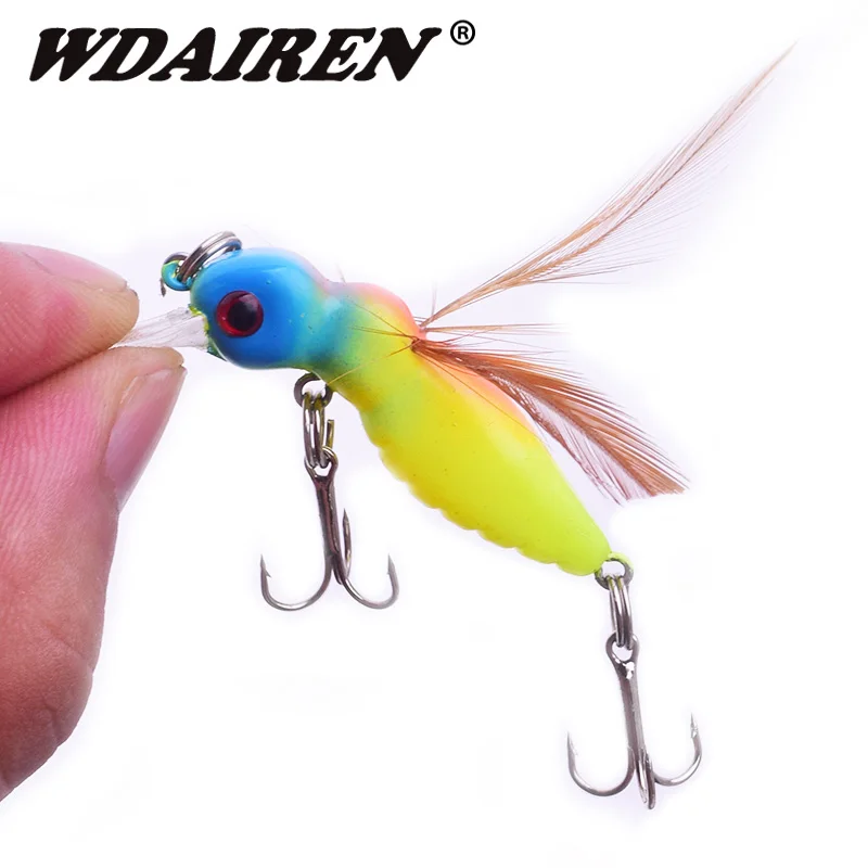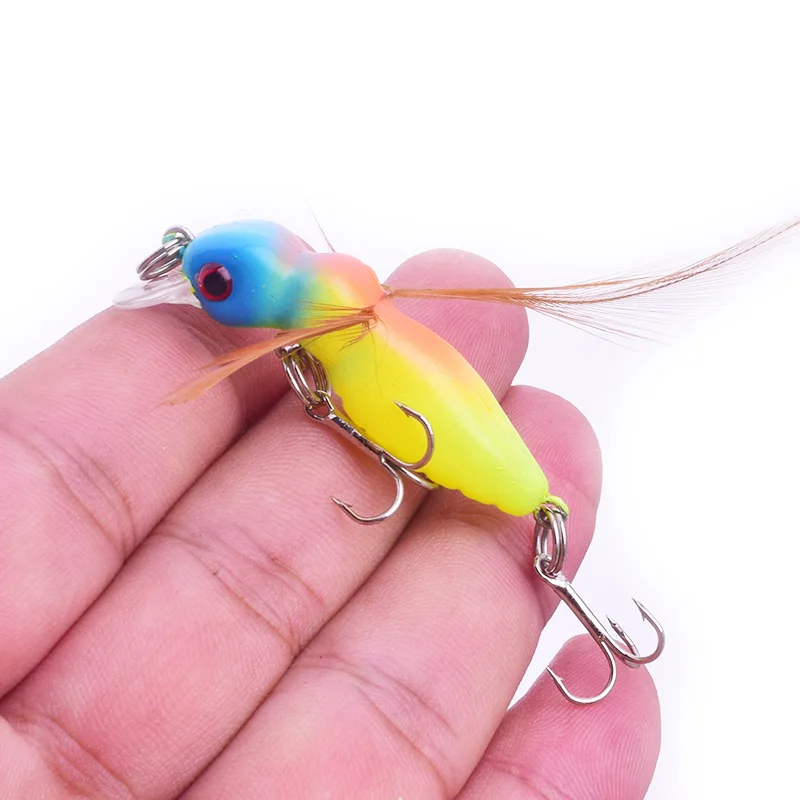Señuelo de Pesca de abeja con plumas, 4,5 cm, 3,5g, Crankbait, Pesca de agua dulce, Isca, cebo Artificial para insectos, aparejos de Pesca Wobbler, 1 ud.