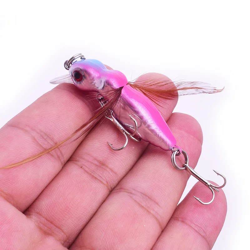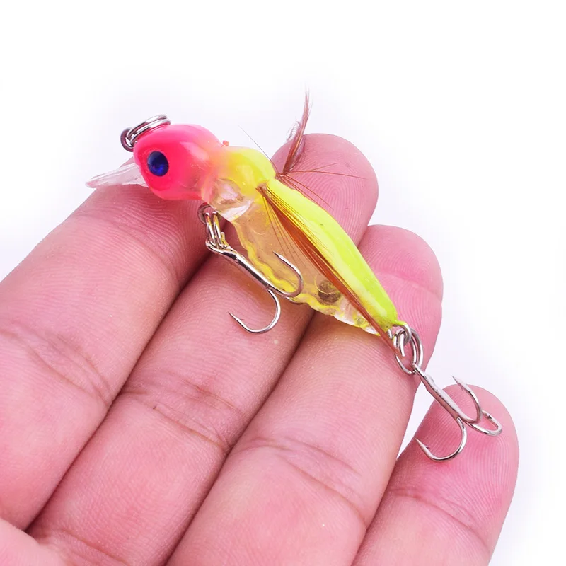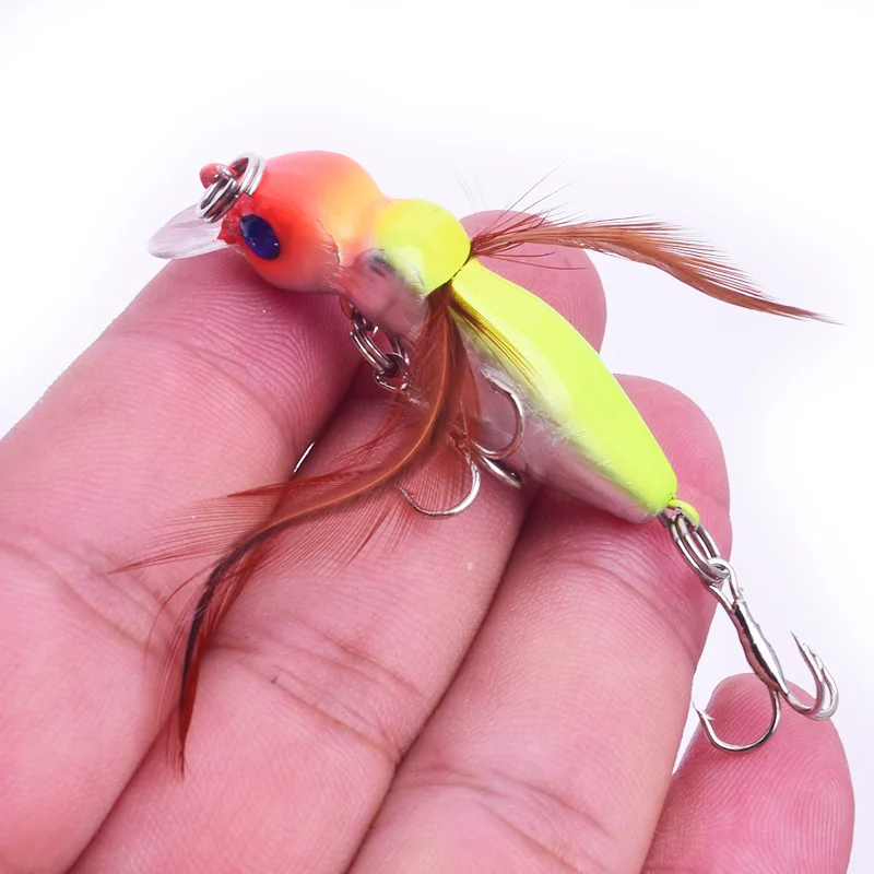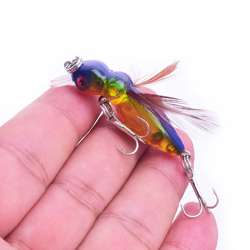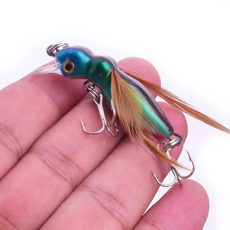 Señuelo de Pesca de abeja con plumas, 4,5 cm, 3,5g, Crankbait, Pesca de agua dulce, Isca, cebo Artificial para insectos, aparejos de Pesca Wobbler, 1 ud.
