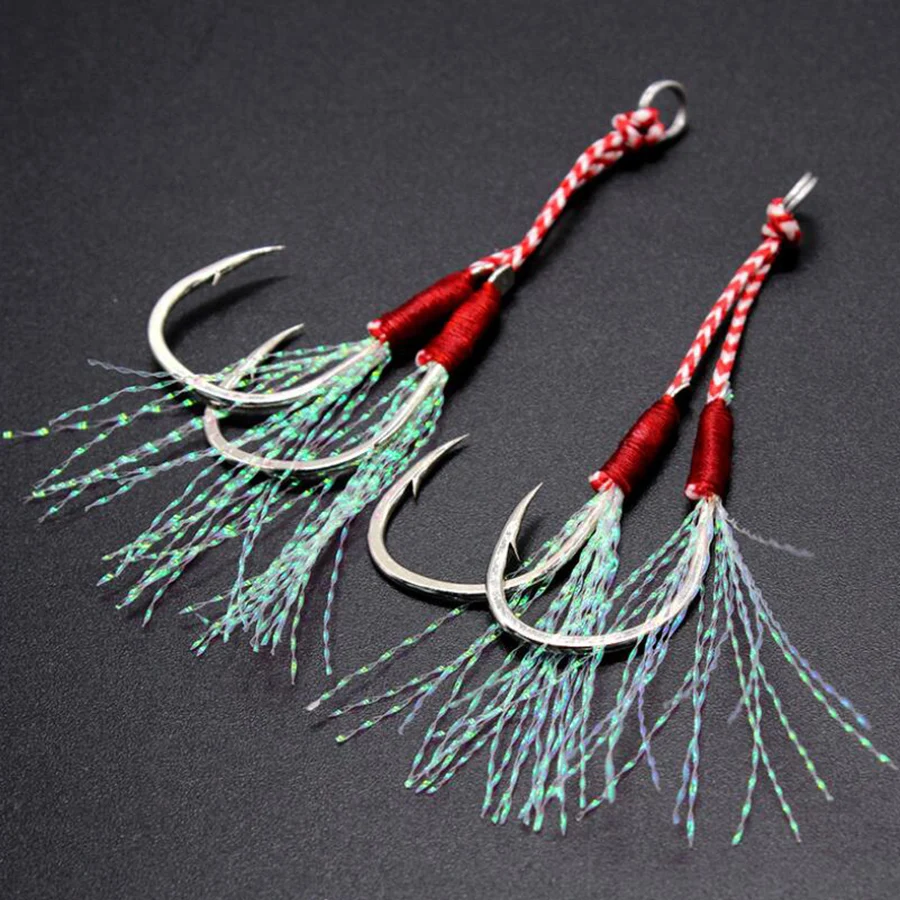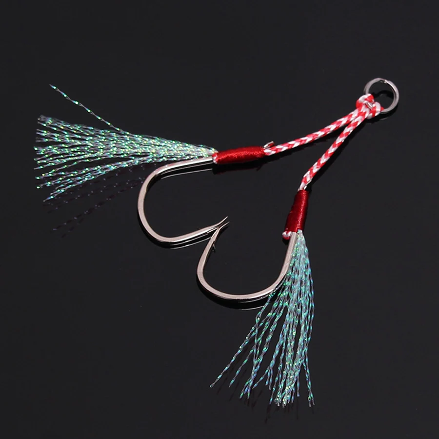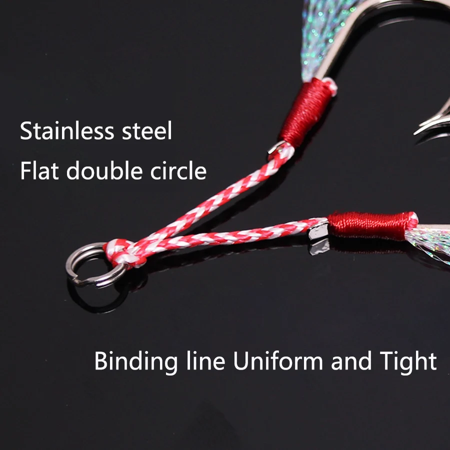 Hilo Feather Cast Assist/Fish/Double/Circle Hooks Barbed Double Stainless Fishing Tackle/Hook Sea Ocean Slow Jigging Fishhook