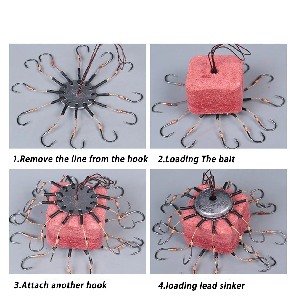 1. Consiste en 12 u 8 ganchos afilados, aumentando la tasa de aumento de los peces al anzuelo. 2. Maravillosos aparejos de pesca para amantes de la pesca. 3. Superafilados y duraderos, están hechos de acero al carbono de alta calidad. 4. El gancho está envuelto con goma anti-envoltura. Duradero y práctico