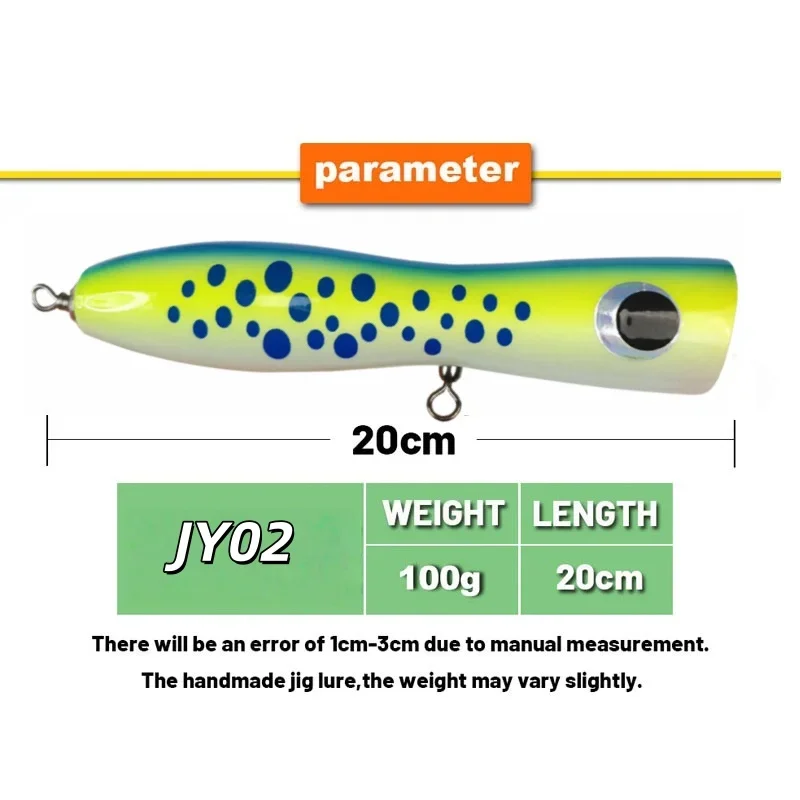 Señuelo de pesca de agua salada, 20cm, 100g, gran juego, hecho a mano, de madera, Topwater GT, Woodend Popper