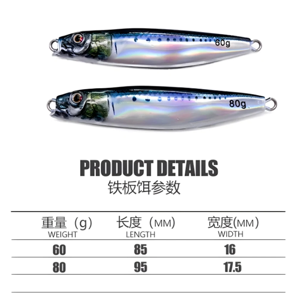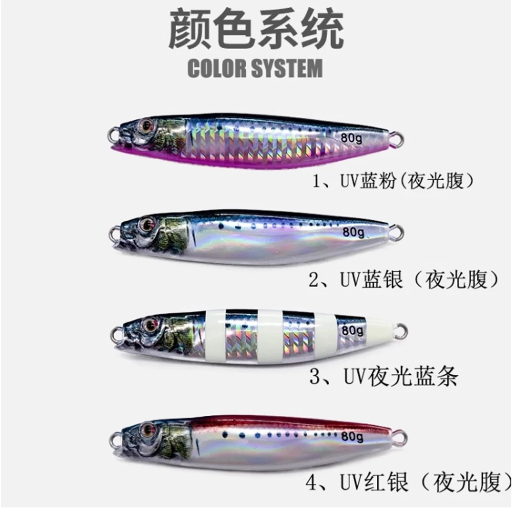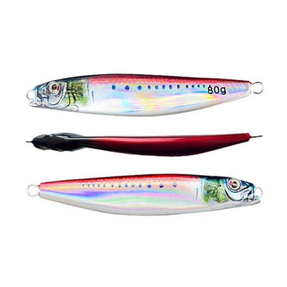 Señuelo de pesca de agua salada 60G80G, plantilla de Metal 3D Vertical, Jigging, arrastre lento, cuchara fundida, cebo para lubina, atún, Mahi Marlin