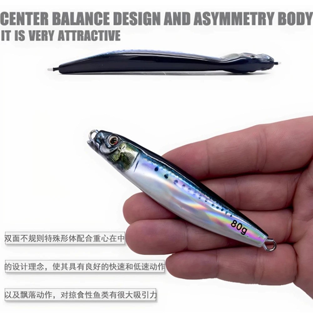 Señuelo de Pesca de Agua Salada, Cebo de Cuchara Fundida de Arrastre Lento, Vertical, 3D, Atún, Lubina, Mahi, Marlin, 60G80G
