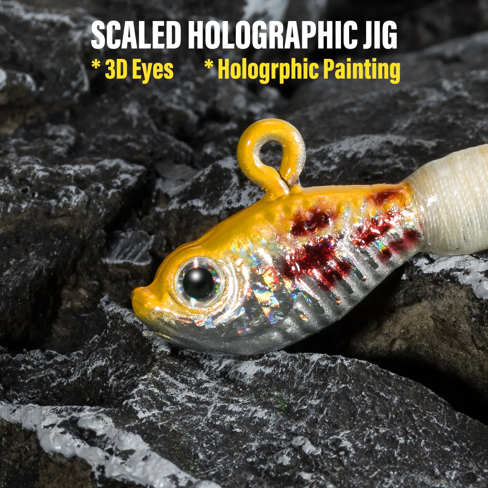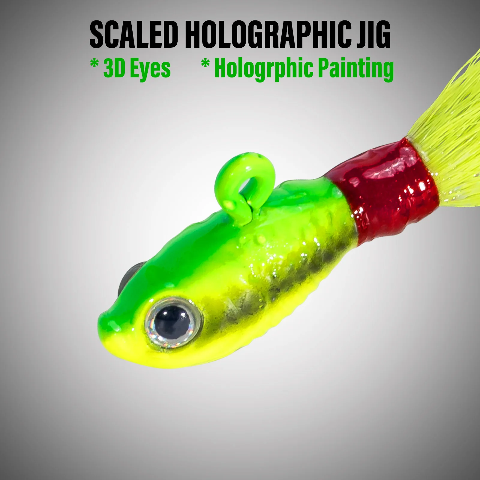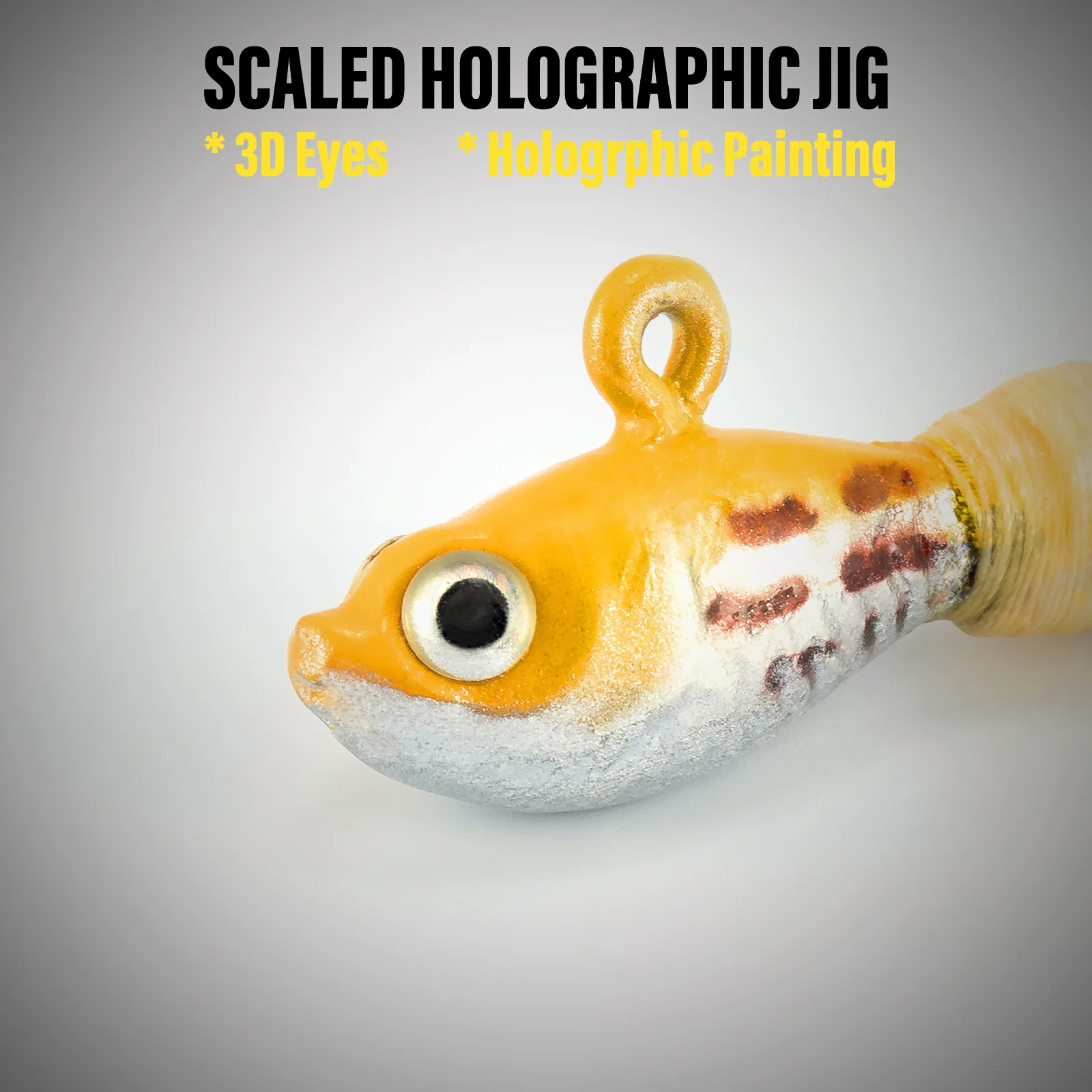 Realista:Con ojos 3D, cuerpo de acabado holográfico, todos los peces tienen CERO resistencia a estas plantillas bucktail.