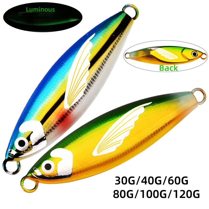 Señuelo de pesca de agua salada, anzuelo de Metal fundido a tierra, cuchara Jigging, aparejo de cebo Artificial, 30G-120G, gota lenta, 1 unidad