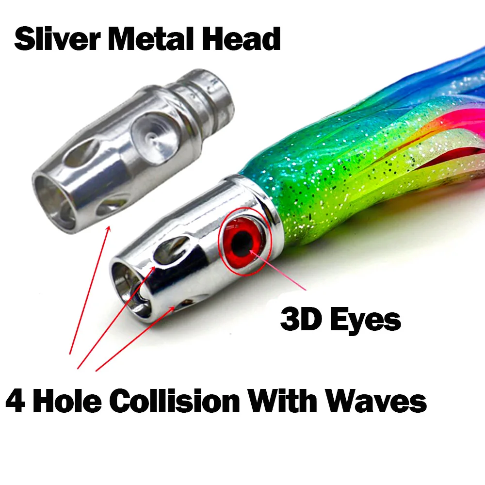 1 unidad cabeza de Metal pulpo Mahi calamar falda cebo 66g/6,5 pulgadas gran juego arrastre pesca Marlin atún señuelos curricán señuelo de pesca de agua salada