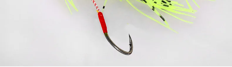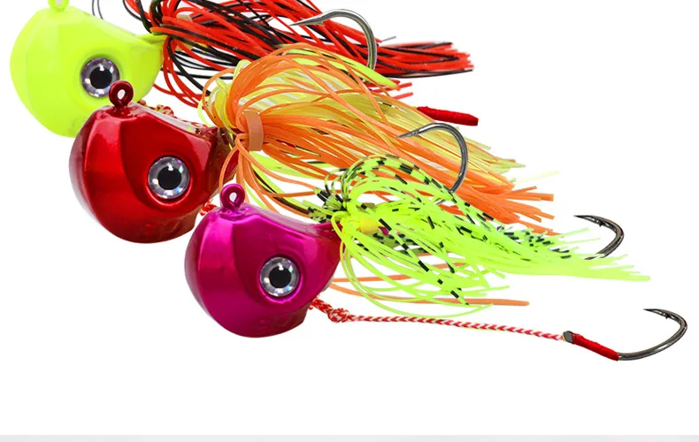 Características: ojo de pez 3D, pulverización láser, anzuelo de acero de alto carbono, falda de silicona.