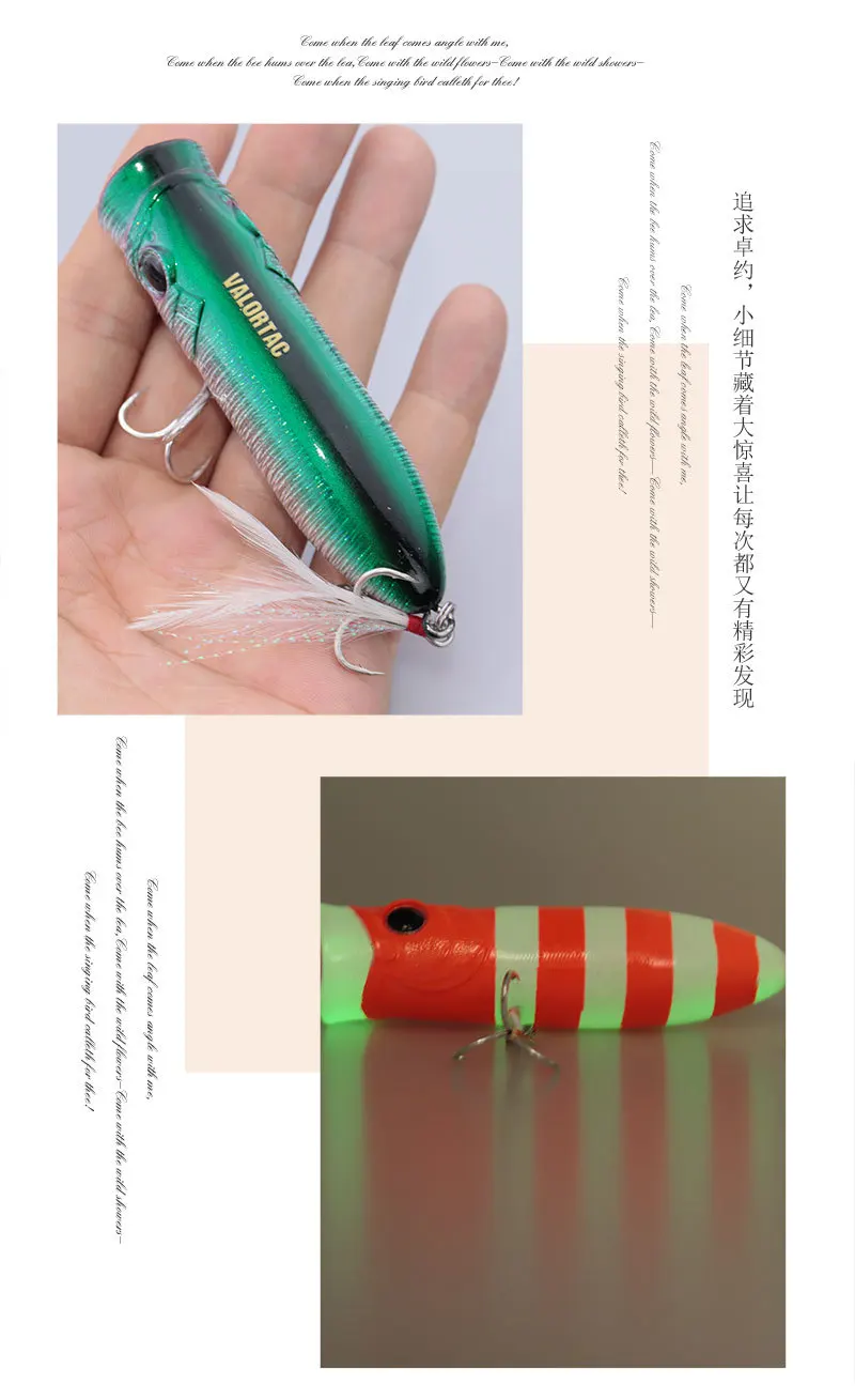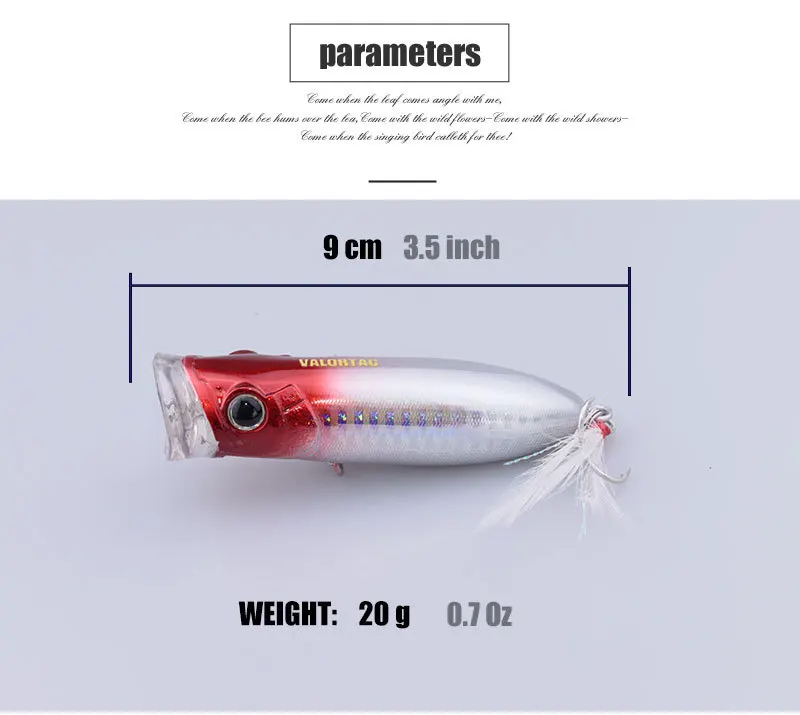 Este popper de tamaño mediano se adapta a una variedad de ocasiones de pesca, lago de río en estanques de playa