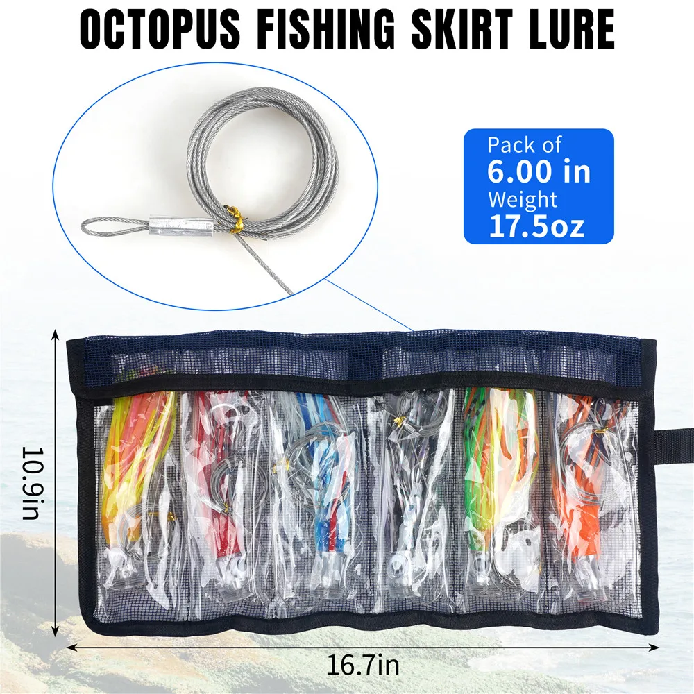 Material: líder de alambre de acero, señuelo de faldones de goma, anzuelos de pesca de acero inoxidable, cabezal de plantilla acrílico