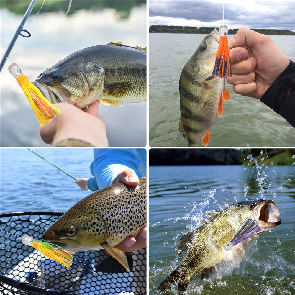 Materiales de primera calidad: cabeza acrílica con peso de plomo en el interior y faldas de PVC de calidad para un movimiento realista en el agua.