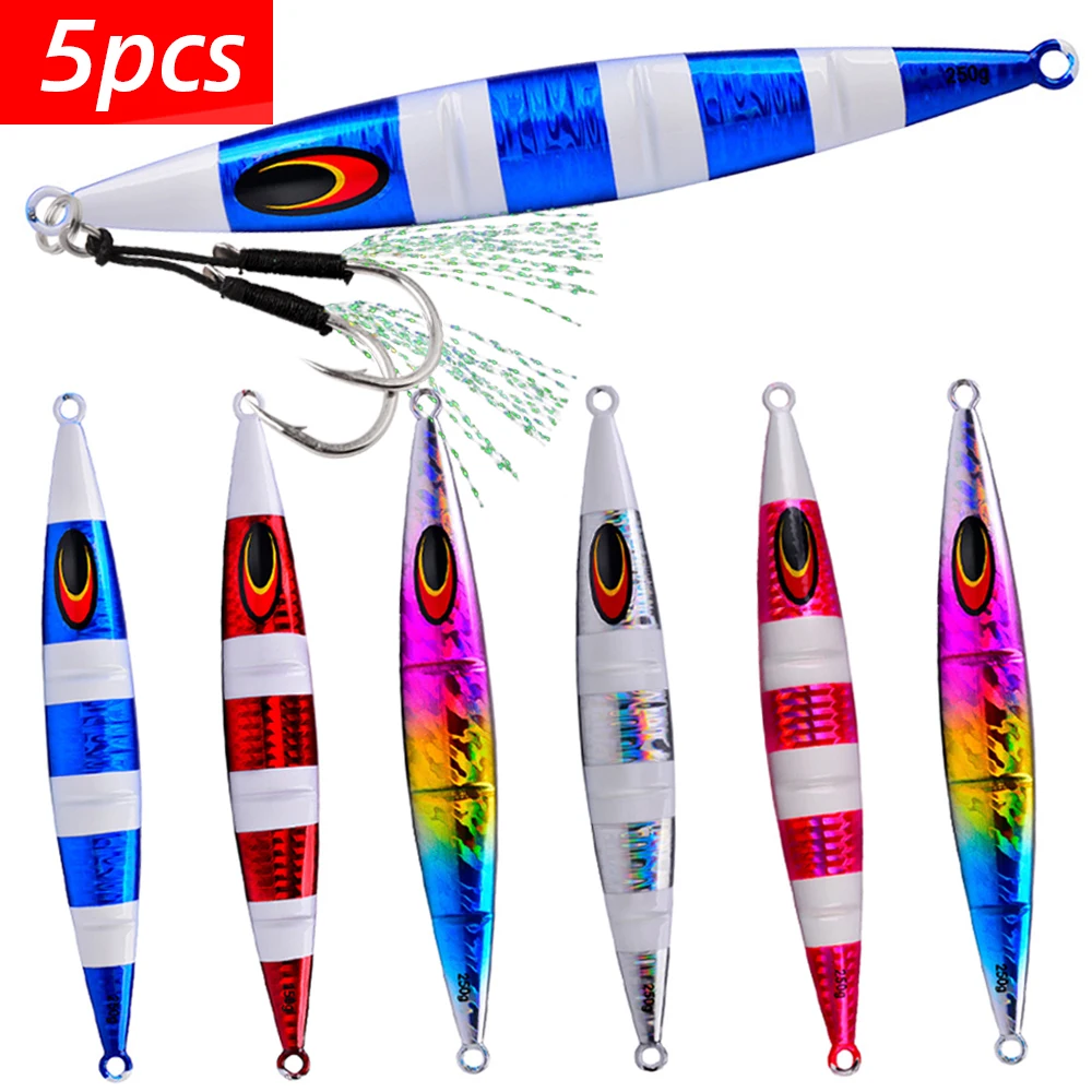 Señuelo de pesca de aguas profundas, plantilla de Metal, 30g, 60g, 100g, 200g, señuelo de Jigging de fundición lenta, trucha, atún, aparejos de cebo Artificial, 5 uds.