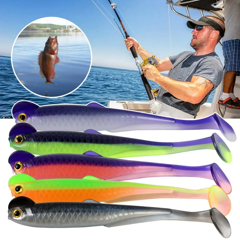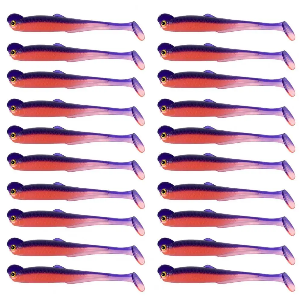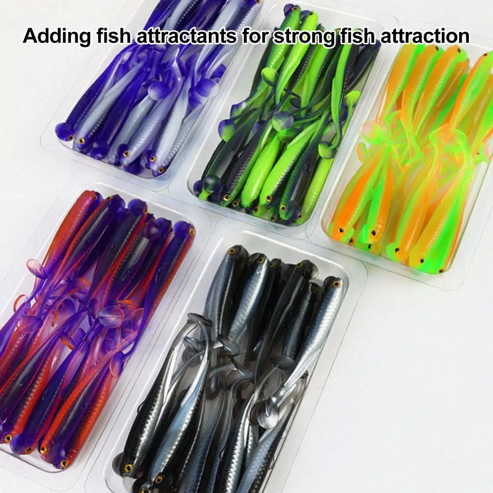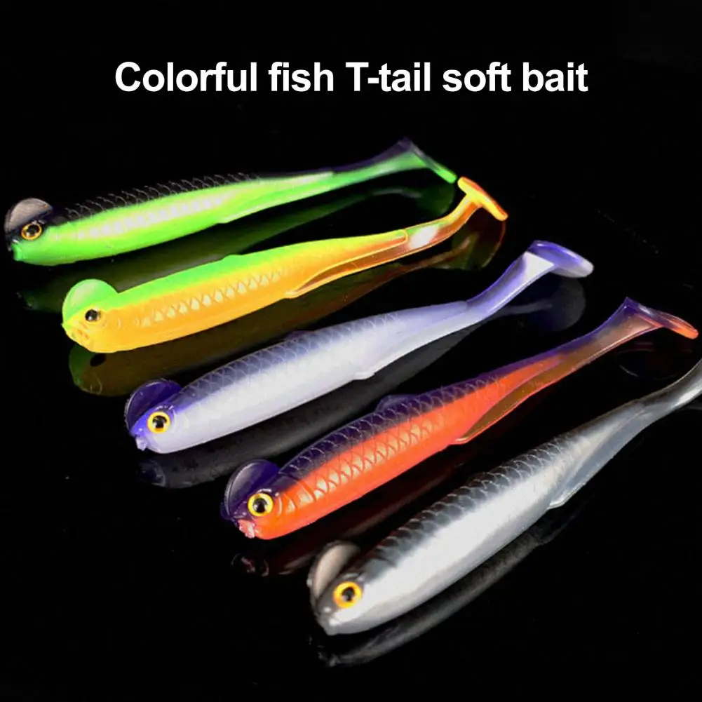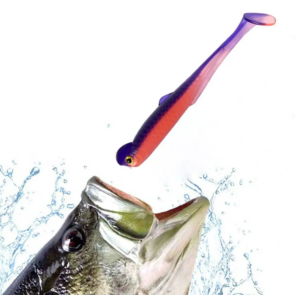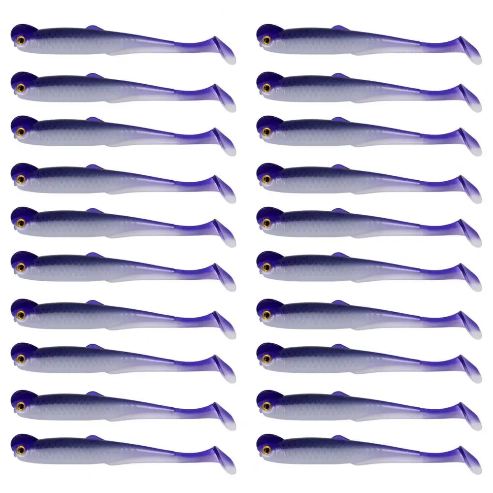 Señuelo de pesca 3D, 20 Uds., pez Artificial con cola en T, cebo Flexible para peces para Texas Jigs, anzuelos Wacky, pesca al aire libre