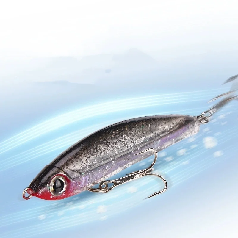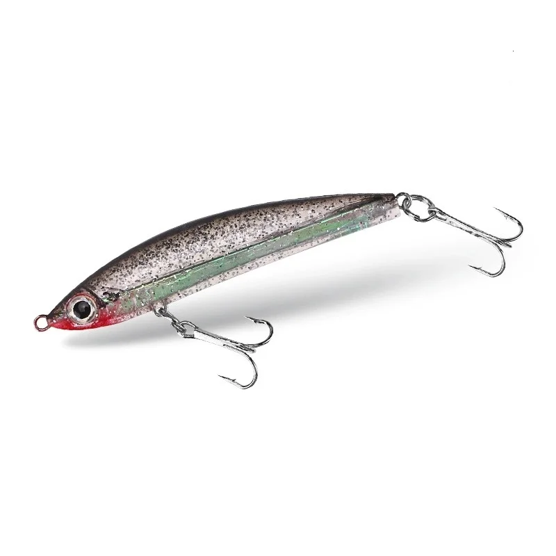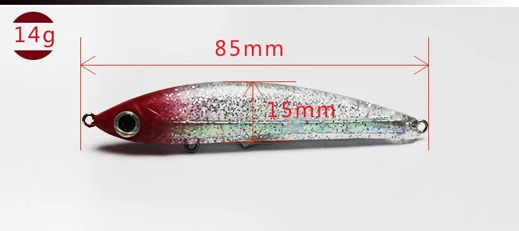Señuelo de pesca de aleación de Zinc fundido largo, cebo blando integrado, 14g, 8,5 cm, señuelos artificiales que se hunden aerodinámicos, lote de 2 piezas en oferta