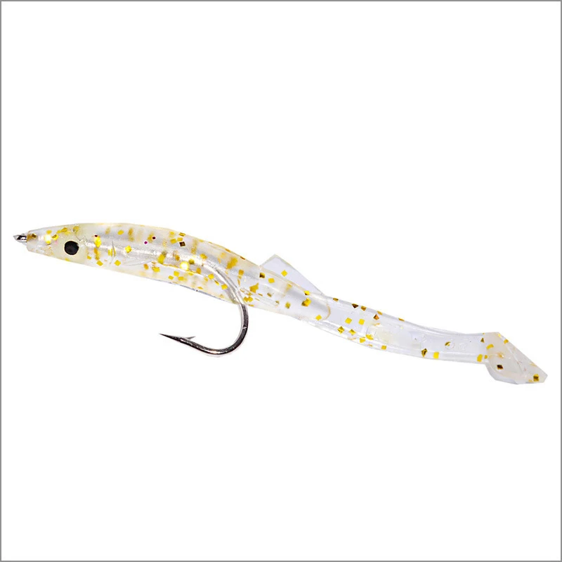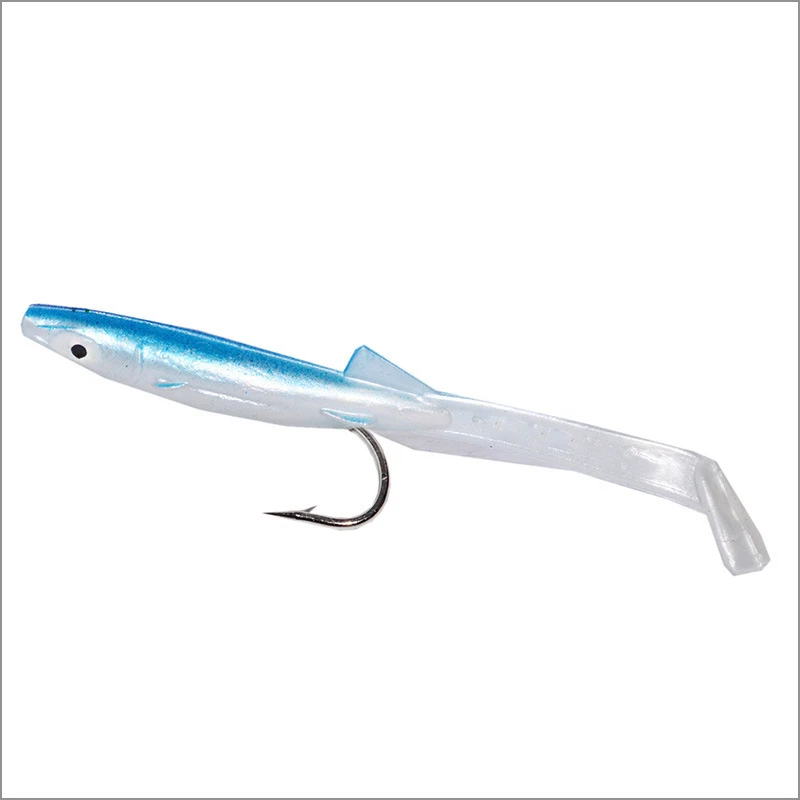 6 unids/lote señuelo de Pesca pez anguila señuelo blanco azul cebos blandos con anzuelo 8cm 2,3g pequeño pez anguila cebo Artificial Pesca Leurre