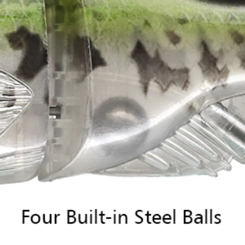 Los sonajeros de acero incorporados facilitan el lanzamiento del cebo (más peso) y control.También hace ruido a medida que se recupera, lo que podría atraer y provocar que los peces huelan.