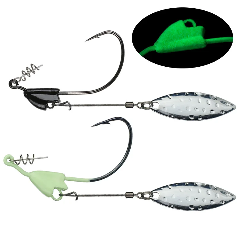 Señuelo de pesca anzuelo con cabeza de anzuelo, 5g, 6,5g, 8,5g, 12g con cucharas de hoja Salix, anzuelo que se hunde, Spinner, anzuelos de gusano, lote de 2 piezas en oferta