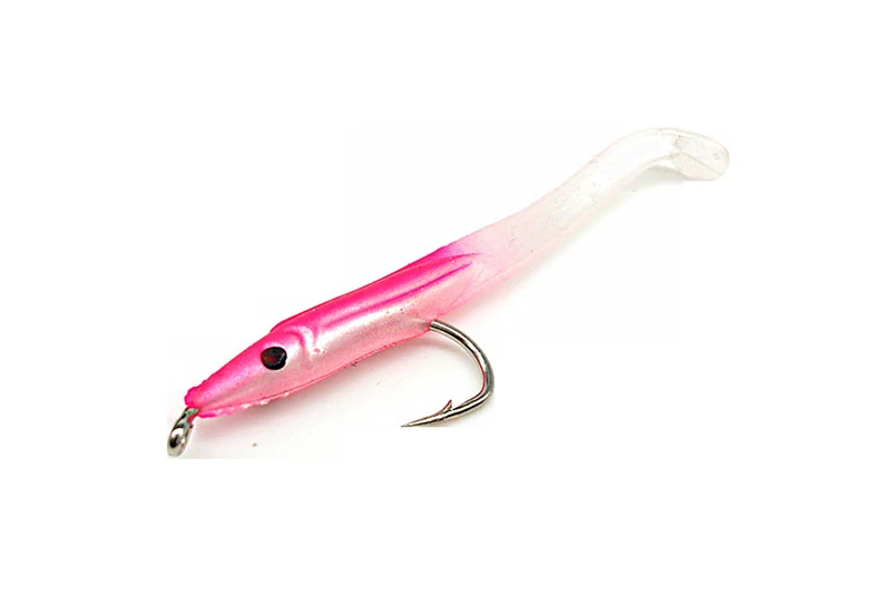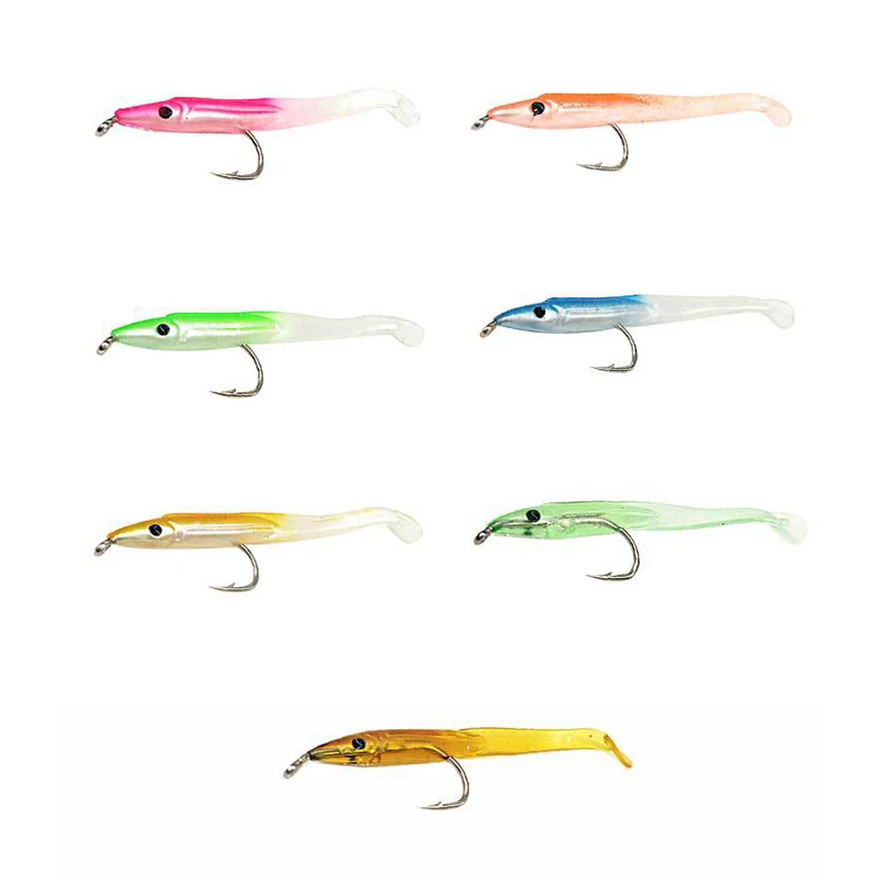 Noticias 15 unids/lote 5cm 0,6g señuelo de Pesca pescado Anguila señuelo rosa azul cebos suaves con anzuelo pequeño pez anguila cebo Artificial Pesca Leurre
