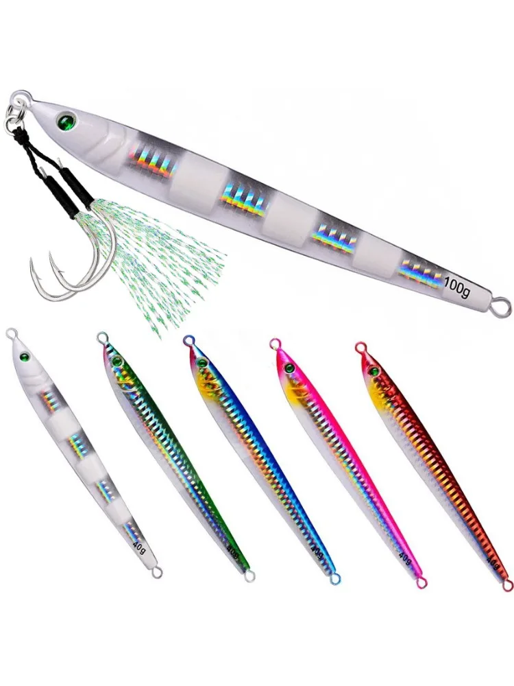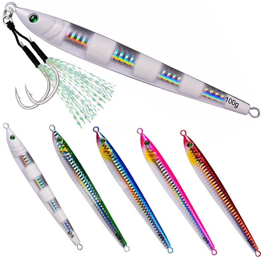 Señuelo de pesca con anzuelo de Metal largo y lento, cuchara de Jigging de fundición lenta, 60G, 80G, 100G, cebo de Metal Artificial, aparejos de mar, 1 Uds.