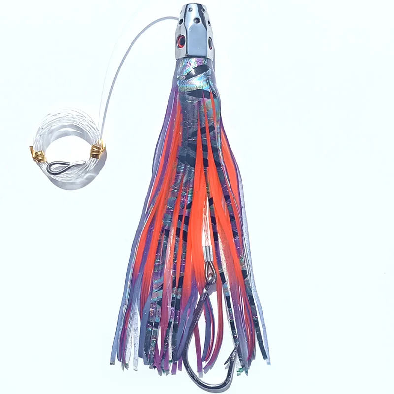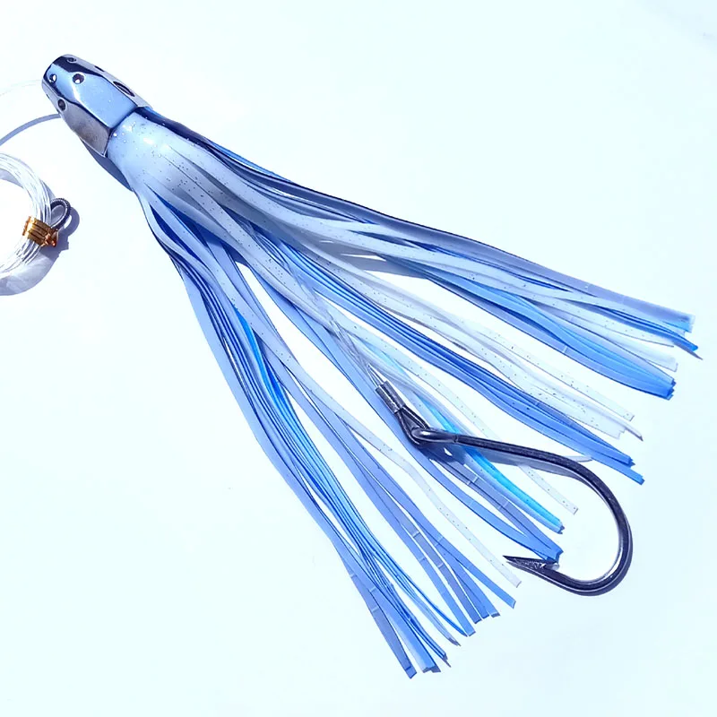 Señuelo de pesca de arrastre para juego grande, cebo de pesca de atún Marlin, 185g, cabeza de cobre, pulpo, falda de calamar, con gancho