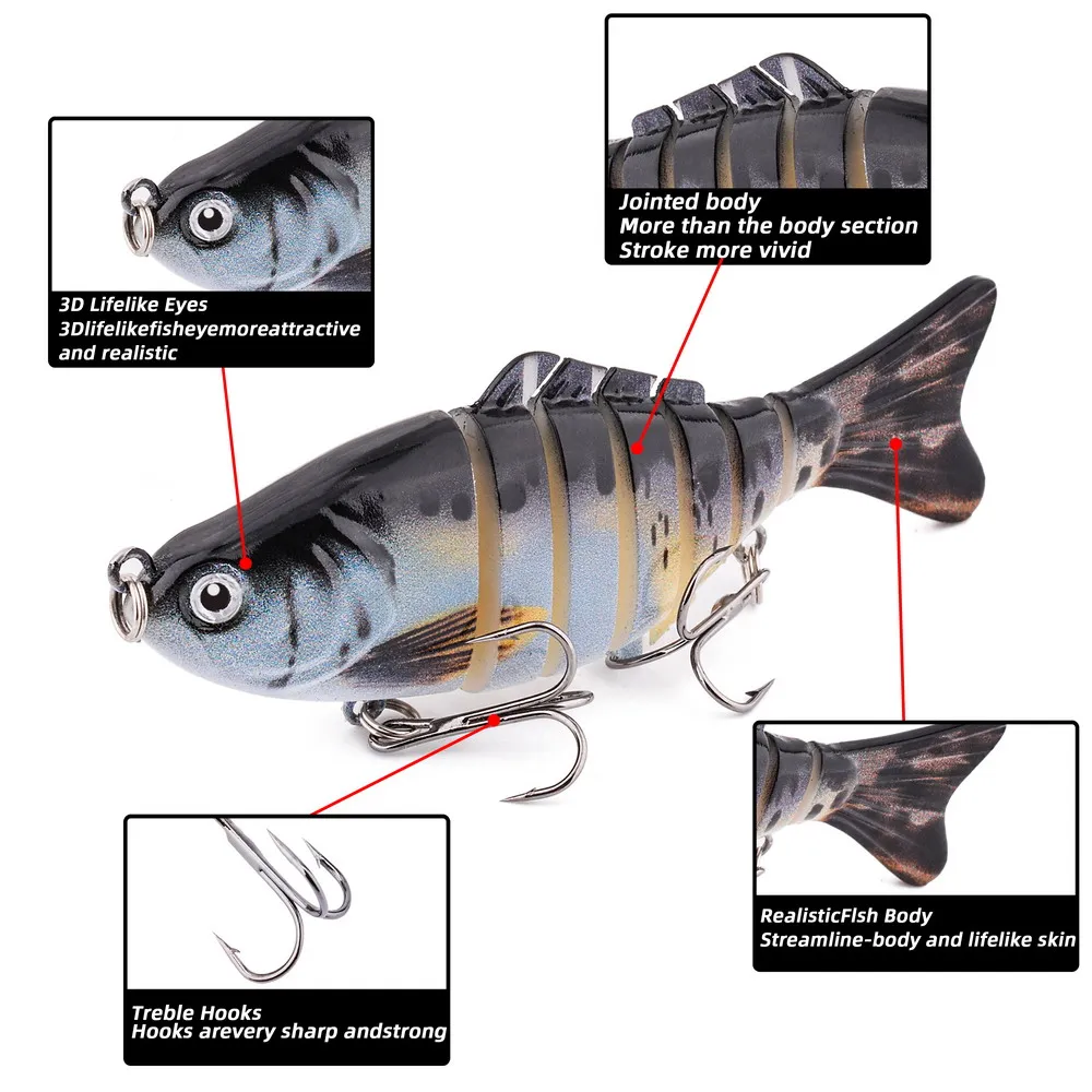 Señuelo de pesca articulado de múltiples secciones, 5 uds., 10cm, 15g, Wobbler, Crankbait, cebo duro Artificial, Swimbait, aparejos de pesca de carpa Trolling