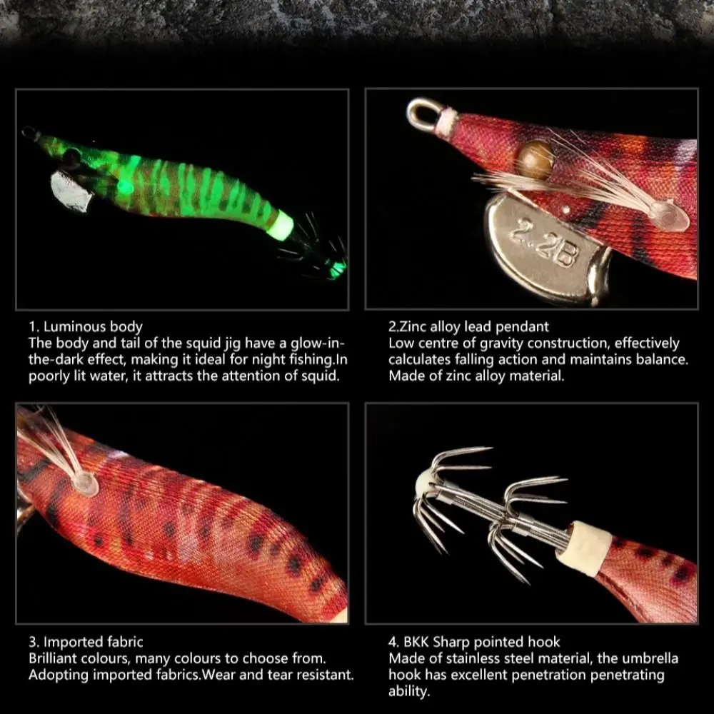 Categoría: Anzuelo para calamar (camarones de madera) Tipo: cebo artificial Posición: Ocean Rock Fshing pesca: camarones de madera wobblers: brillos equipo de pesca: señuelo de pesca cebo para pescar: wobblers para pescar Accesorios de pesca: Aparejos para pescar. equipo de pesca: bearking Señuelo de pesca: cebos de pesca Longitud: 80 mm 95 mm Peso: 6 g/8 g Tipo: hundimiento Color:6 colores Paquete incluido: 1 cebo para camarones.