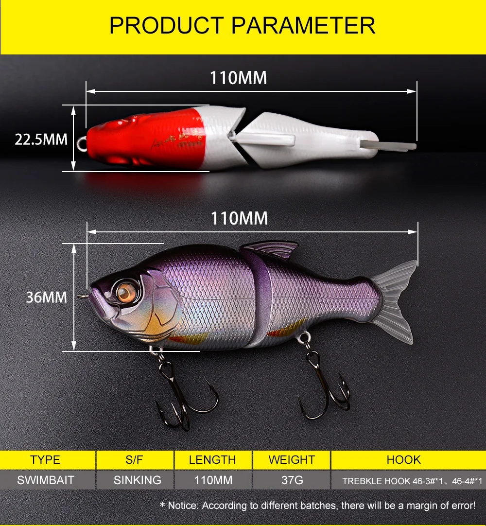 Señuelo de pesca Artificial, cebo articulado de 110mm y 37g, Crankbait duro, 1 unidad