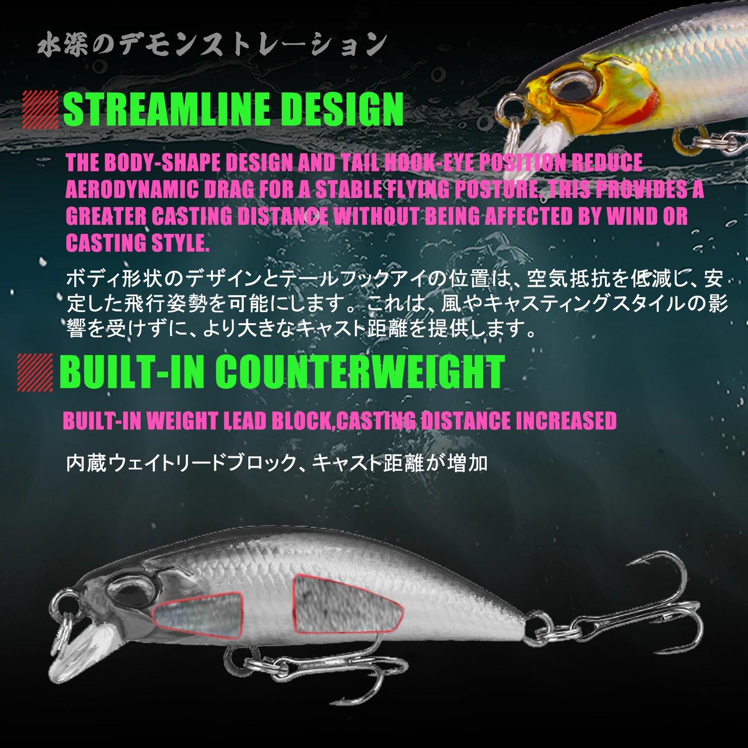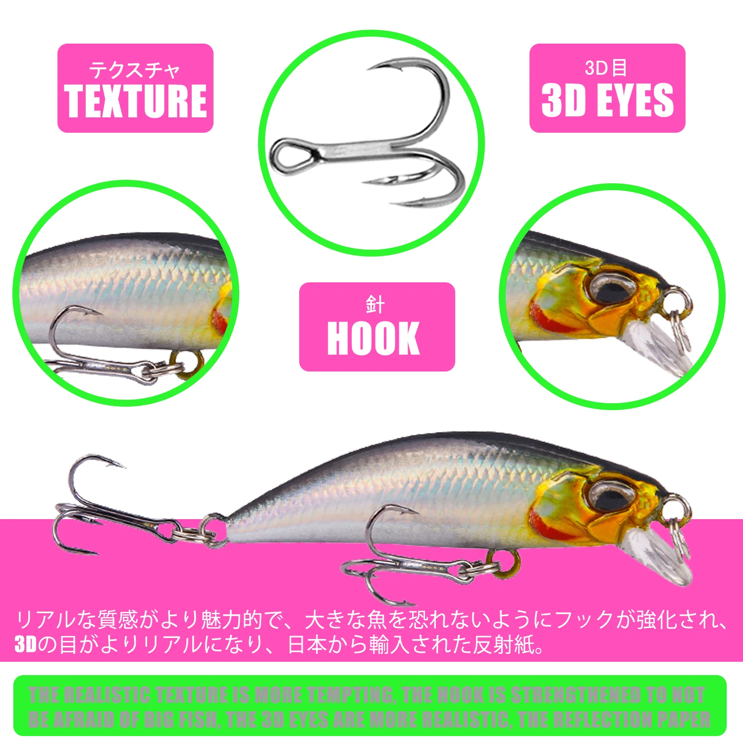Señuelo de Pesca Minnow hundimiento peso de cebo duro 5-5,3g 55-57mm Isca Pesca Artificial completamente acuática Lucio peces cebos accesorios aparejos