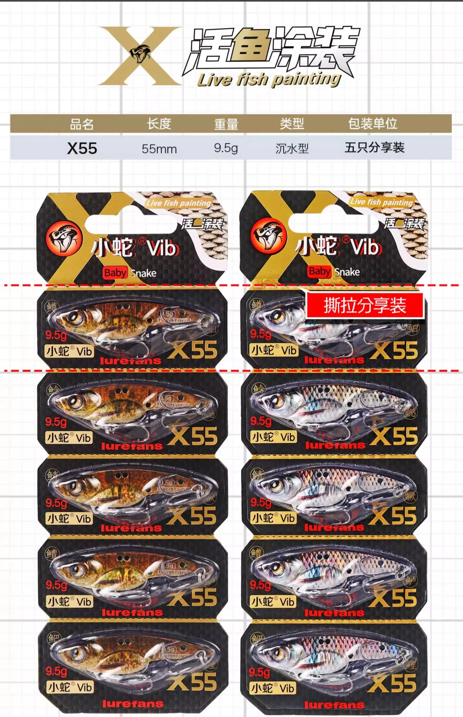 Señuelo de pesca Artificial, cebo duro Wobbler, 5 piezas, serpiente bebé X50/55/60, pintura de peces vivos que se hunden, Metal VIB, 7,5/9,5/13,5g