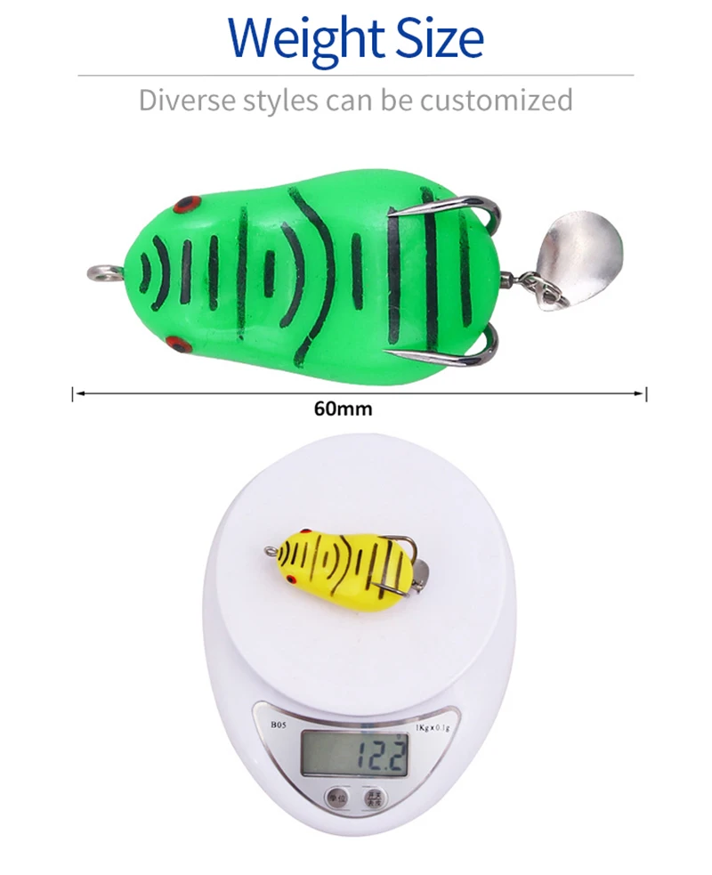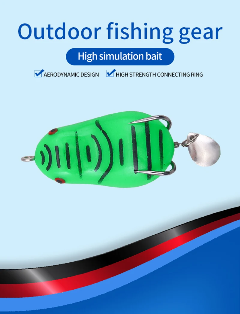 1 señuelo de pesca de 6cm y 12g, cebo de perca de doble anzuelo con lentejuelas de agua superior, cebo artificial Wobblers, cuchara, señuelo giratorio