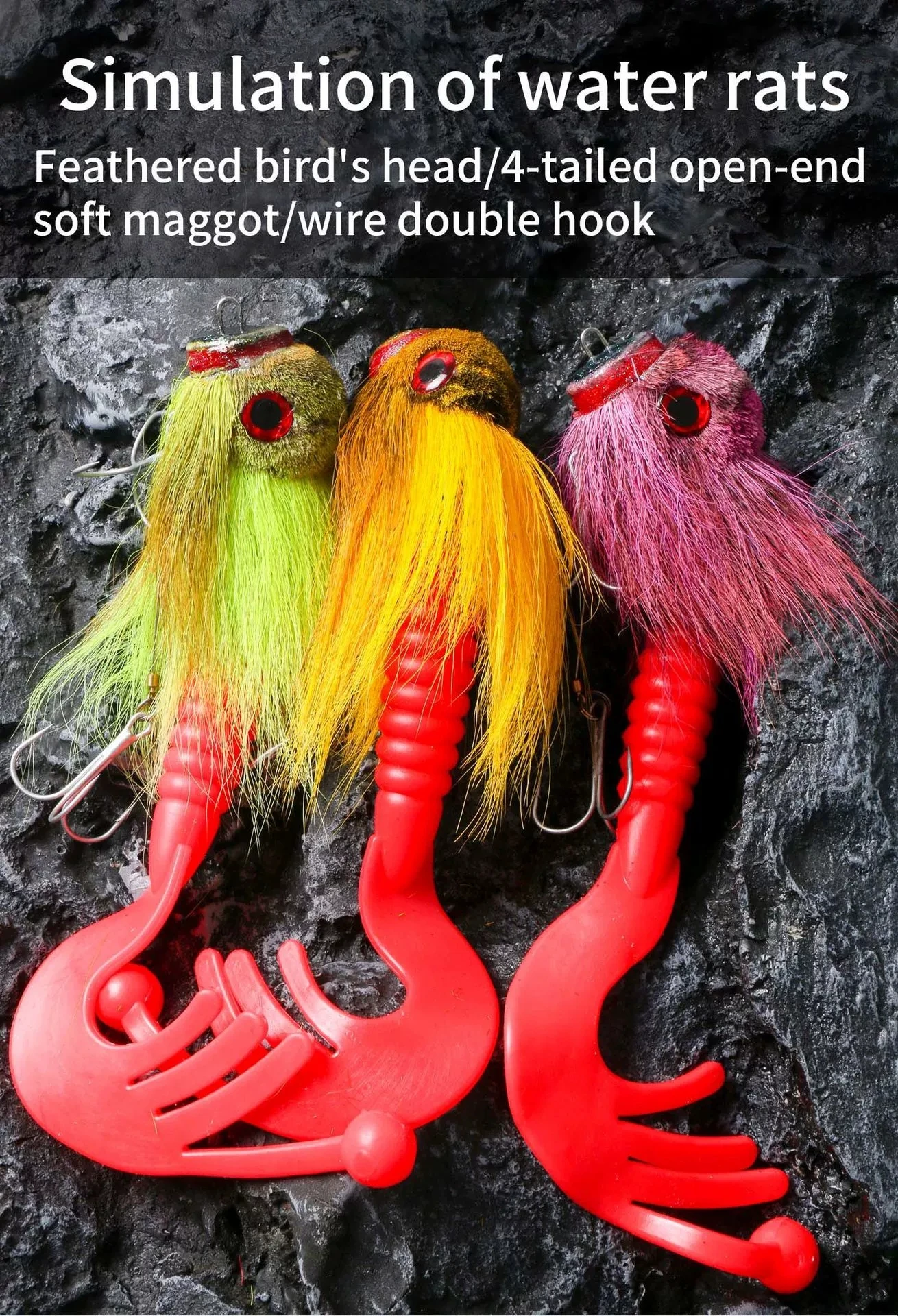 Señuelo de pesca Artificial, cebo de ratón con mosca, cola de pez, silicona suave, pelo de ciervo grande, aparejos de rata, anzuelos de cabeza, Lucio, lubina, invierno, 85g/23cm