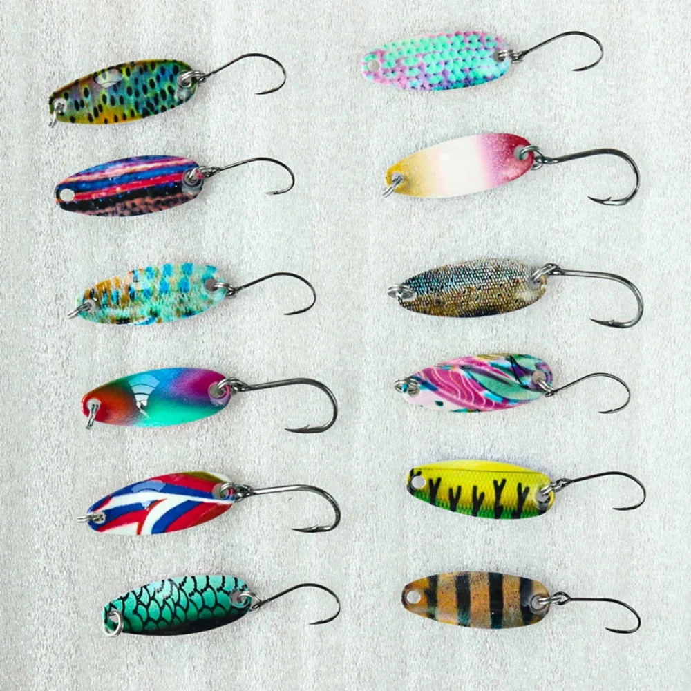 Señuelo de pesca Artificial con estampado 3D, señuelos de Metal, cucharas de 2,5g, anzuelo único, Micro lote de peces, 3 piezas, venta