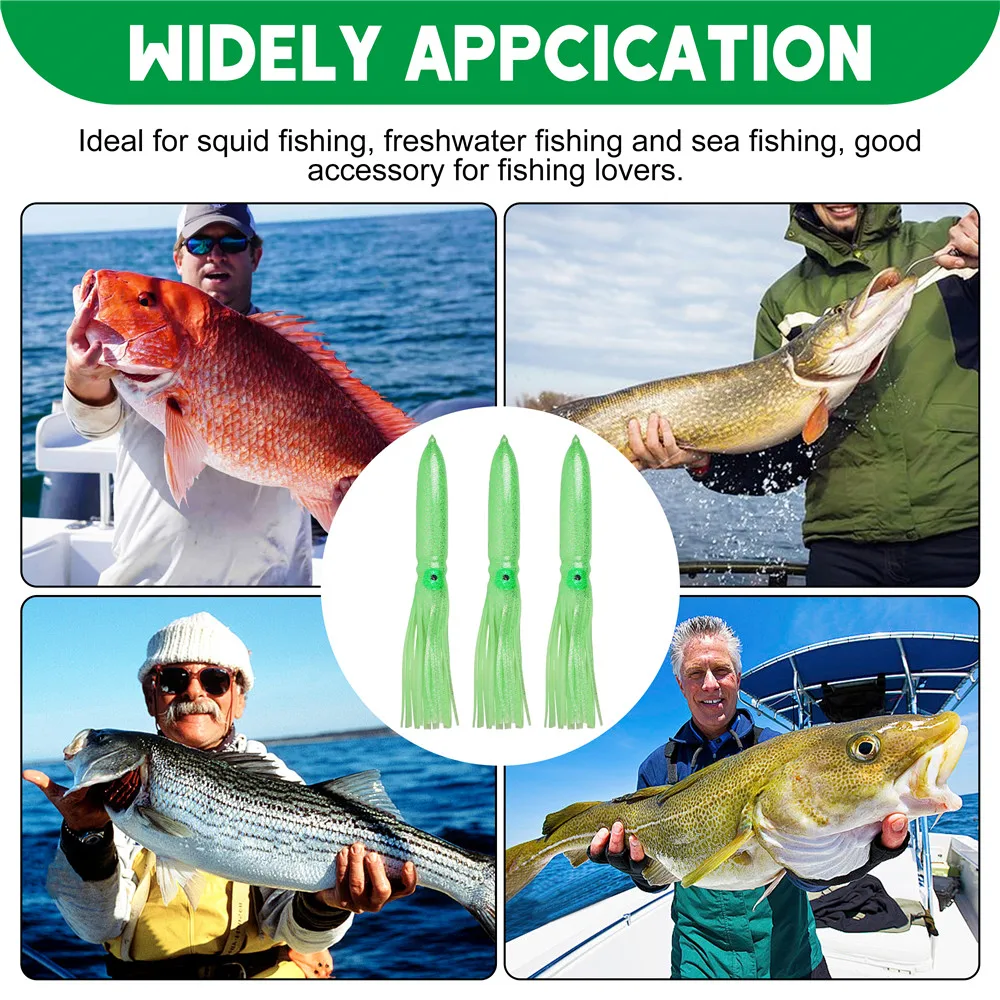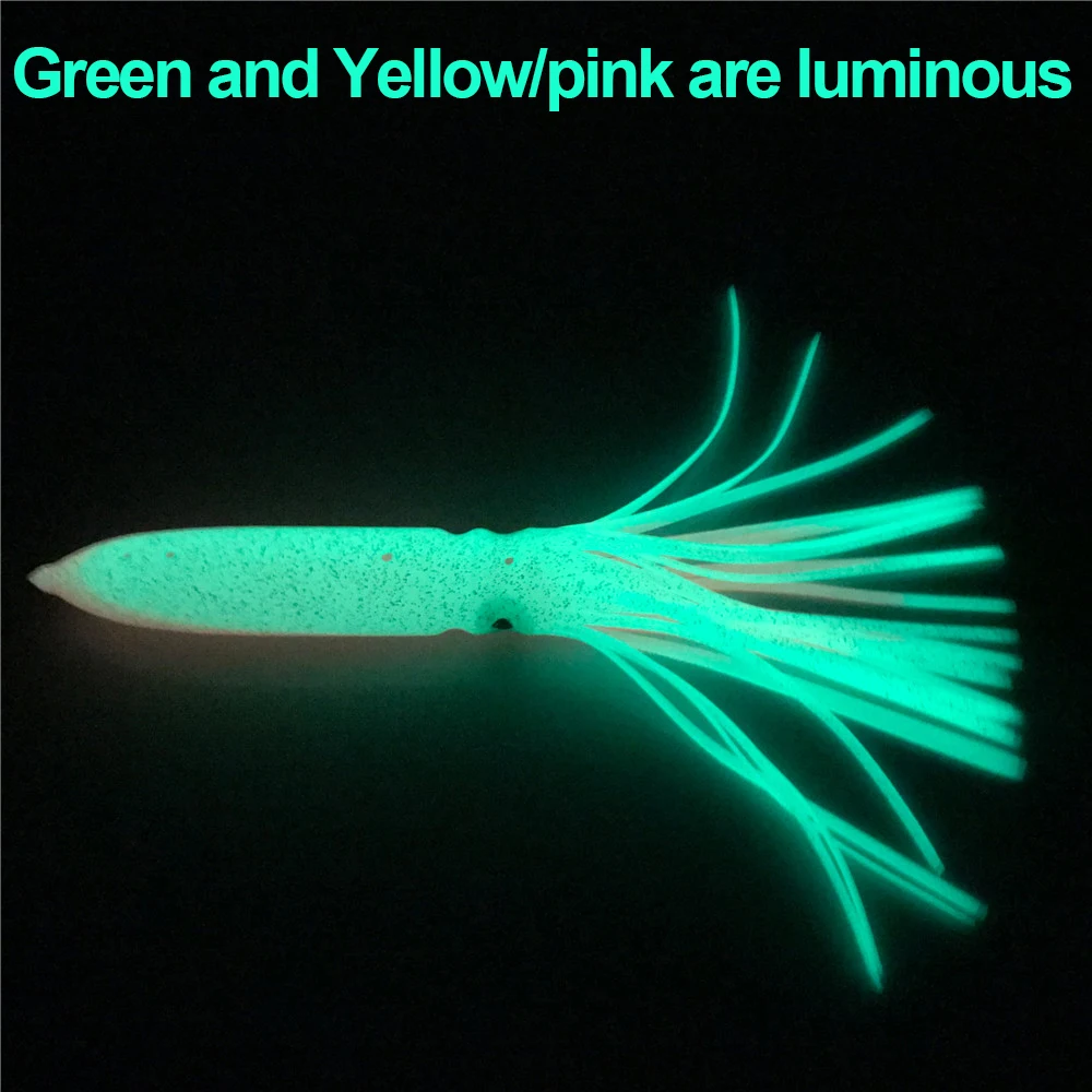 2. Algunos son señuelos luminosos, brillan en el agua, ojos realistas. Es más atractivo para los peces. Señuelo de falda de calamar, pesca de agua dulce y pesca en el mar, ideal para atún, salmón, Marlin, señuelo de pesca de agua salada.
