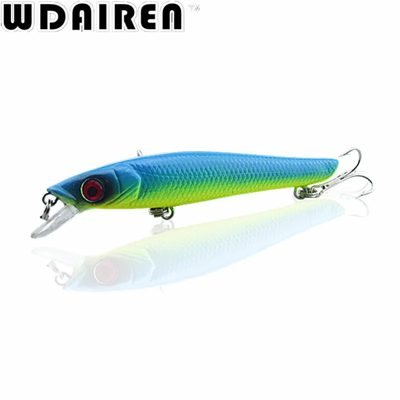 Parámetros del producto:Color: 4 coloresLongitud: 9,5 cmPeso: 8,8gProfundidad de Natación: 0,6 m-1,8 mMaterial del producto: plástico (plástico)Tipo de gancho: 6 # ganchoOjos: 3D los ojosPintura: pintura plástica dura PS verdeEmbalaje: embalaje del bolso del OPP