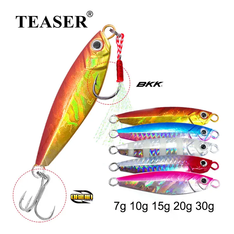 Señuelo de pesca Artificial TEASER-J51, Micro señuelo de pesca en roca, fundición costera, cuchara de hundimiento lento, plantilla de lubina, aparejos, 7g,10g,15g,20g,30g