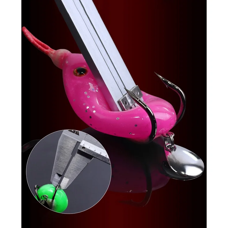 1. El cuerpo de la rana adopta tecnología de recubrimiento multicapa, material de goma, que es más suave, y el diseño de ojo de rana 3D es llamativo y realista, lo que es muy atractivo para el pez objetivo.
