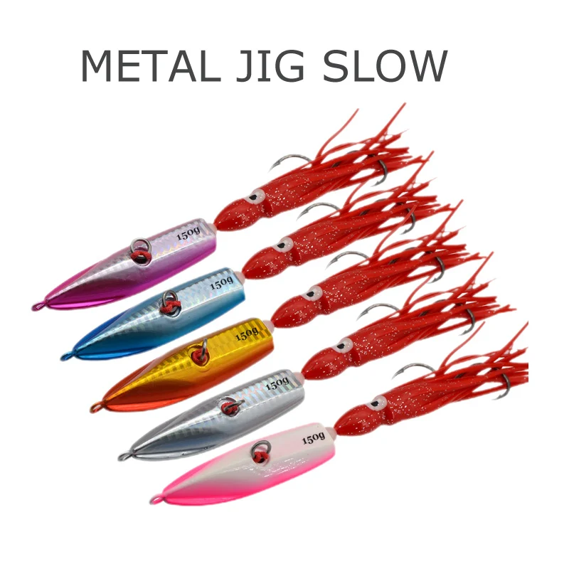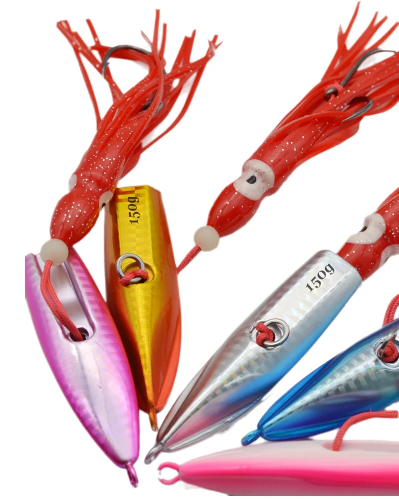 Señuelo de pesca con cabeza de anzuelo de hundimiento lento de Metal, faldas de goma, anzuelo de calamar Inchiku de fondo grande, señuelo de Jigging 150g 180g 200g